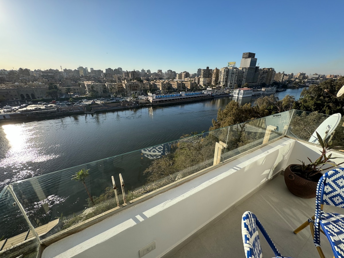((Kindly check our HOUSE RULES before booking)) The studio number is “AB - N1009” Above the 10th floor you will have to climb 2 and a half floors after the elevator from the 8th floor... A unique AB studio with jacuzzi, this unit is located on the rooftop with a stunning view of the Nile River and Cairo city. Our location will ease your stay in Cairo as we are 10 minutes from the city center and the Egyptian Museum and 30 minutes from the Great Pyramids of Giza