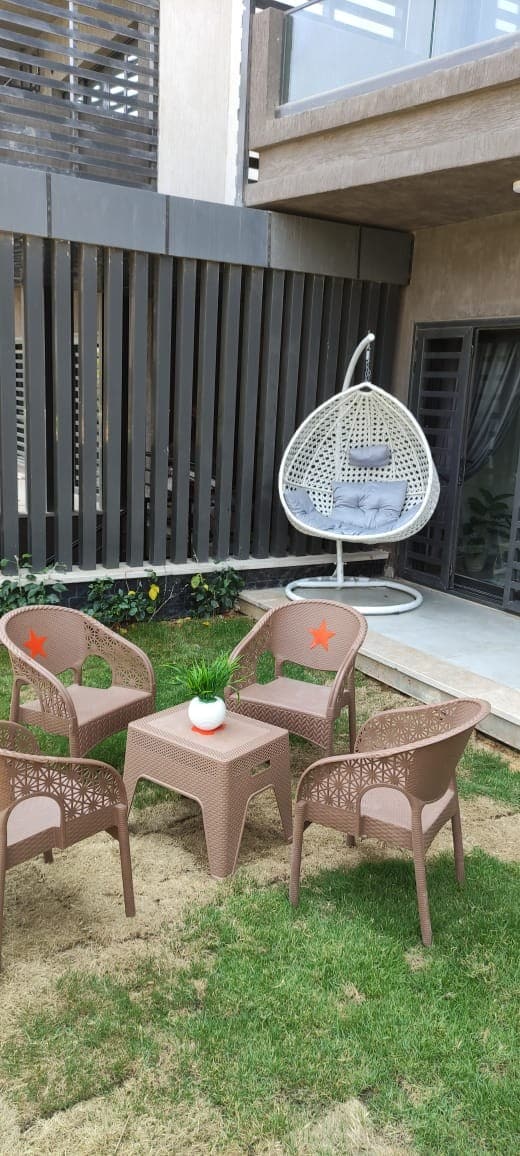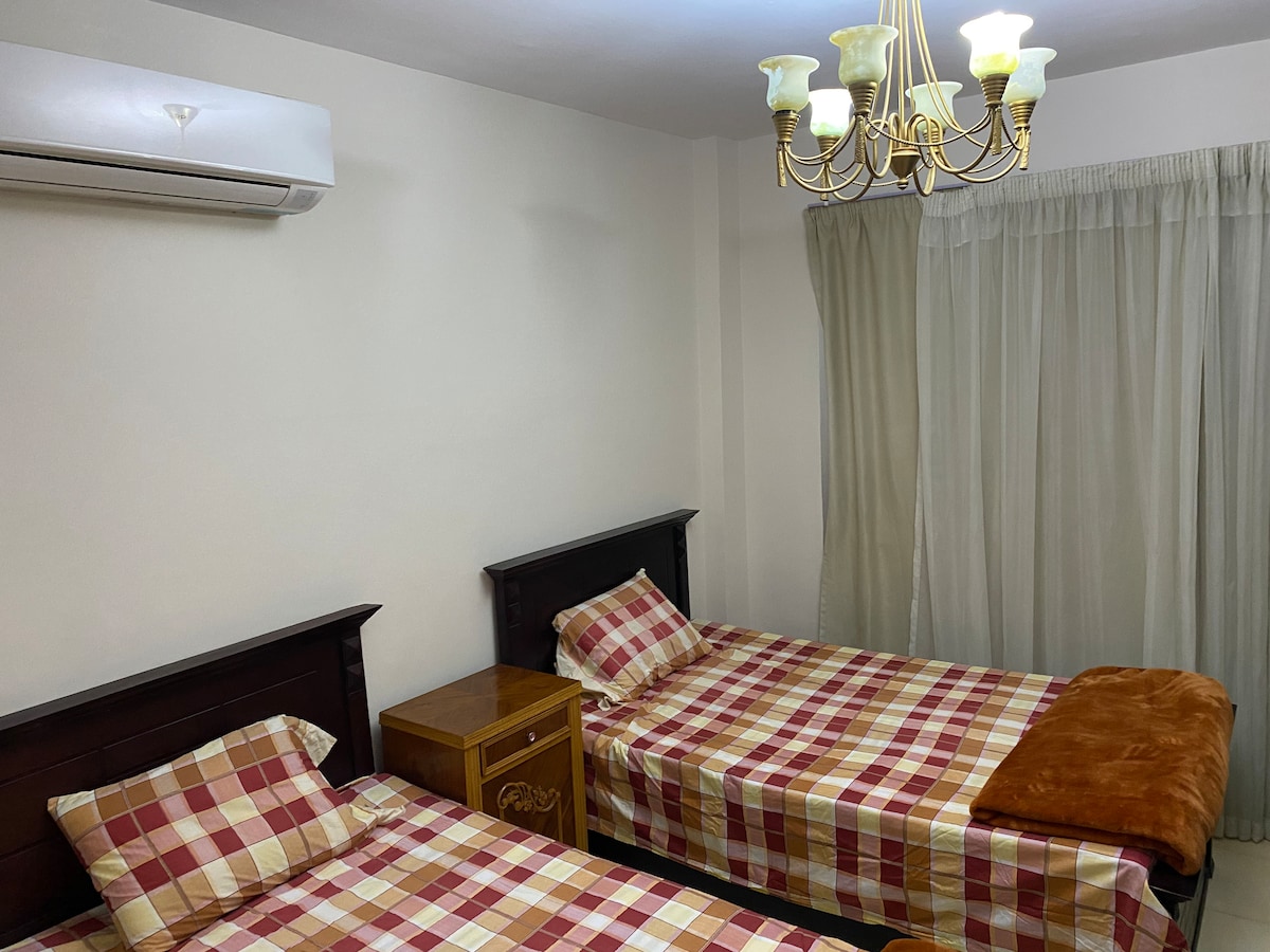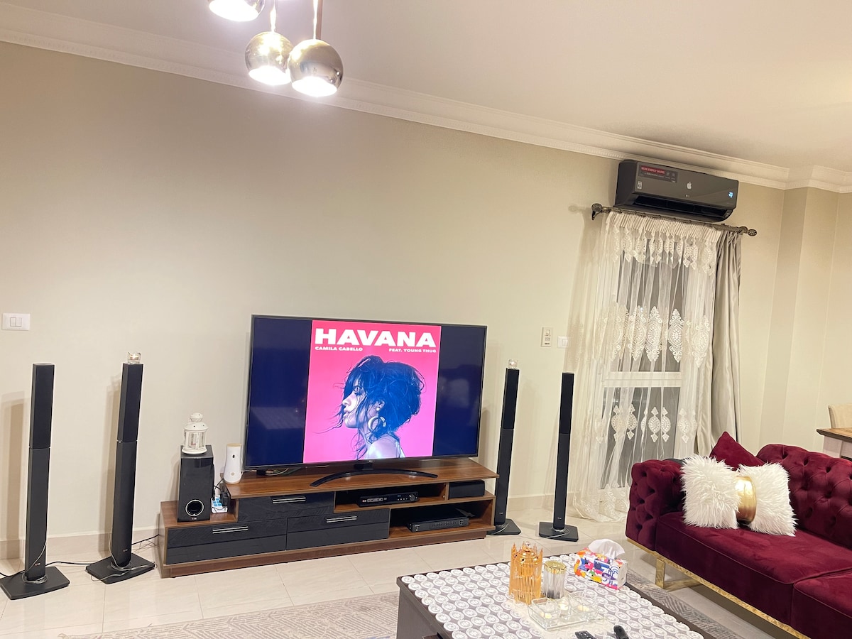 An ENTIRE APARTMENT with a back garden situated in a beautiful and green area in a peacefully integrated community fulfilling all residents' needs. Rooms are newly furnished, air conditioned, smart T.V. and all amenities you might need, super CLEAN and QUIET. The apartment is 25 minutes from Cairo intInternational Airport. coffee shops, restaurants, supermarkets, and pharmacies are all nearby. Hotel standard quality with home like comfort offered with a REASONABLE PRICED.