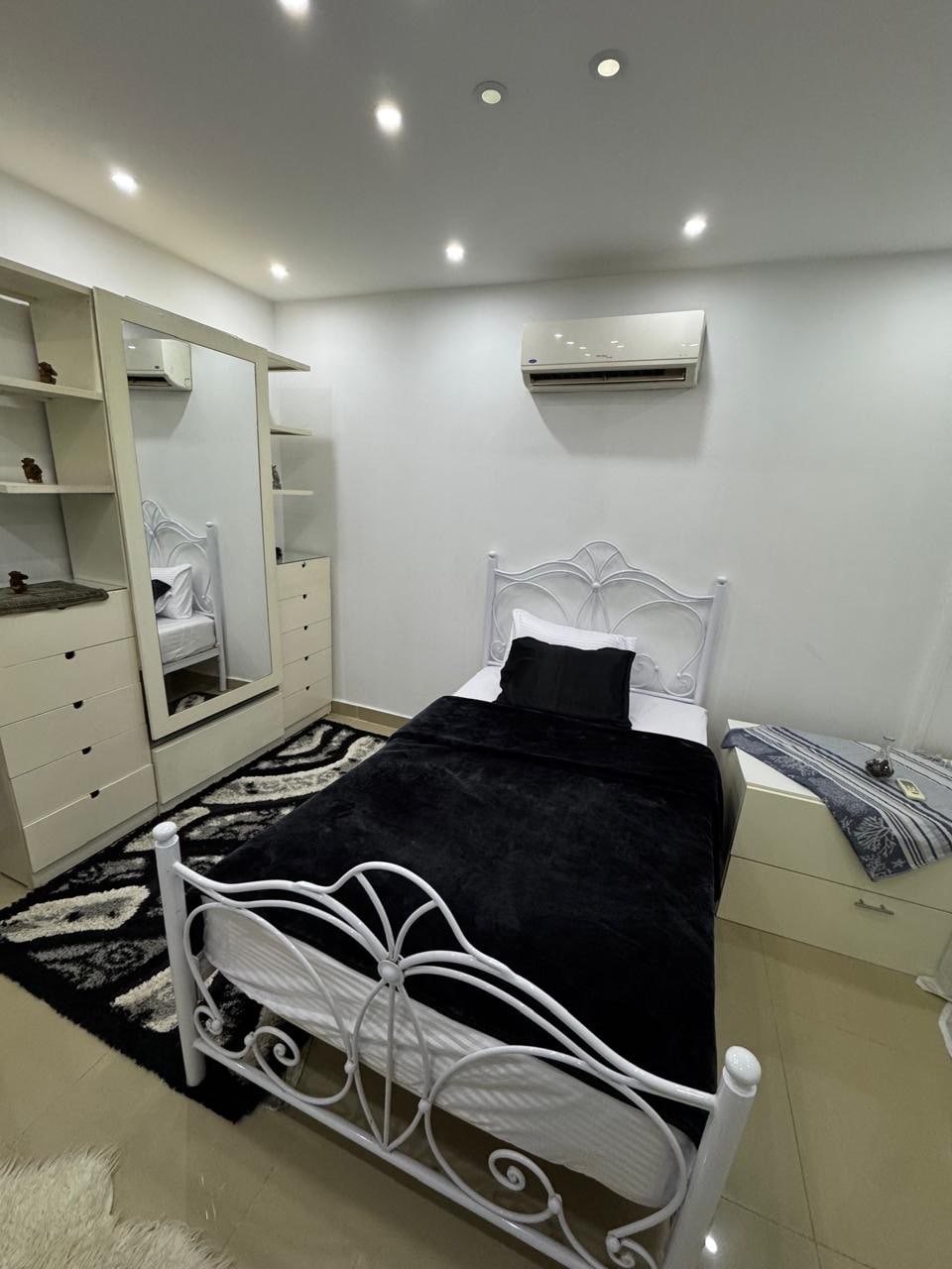 استرخ في هذا المسكن الفريد والهادئ. مدينتي بي ١٢ مجموعه ١٢٥ عماره ٣٧ شقه ٣١ غرفتين كل غرفه بها سرير كبير حمام ومطبخ امريكي وبالكونه شقه بحري قريبه من الخدمات والمسجد مكيفه ومجهزه واي فاي