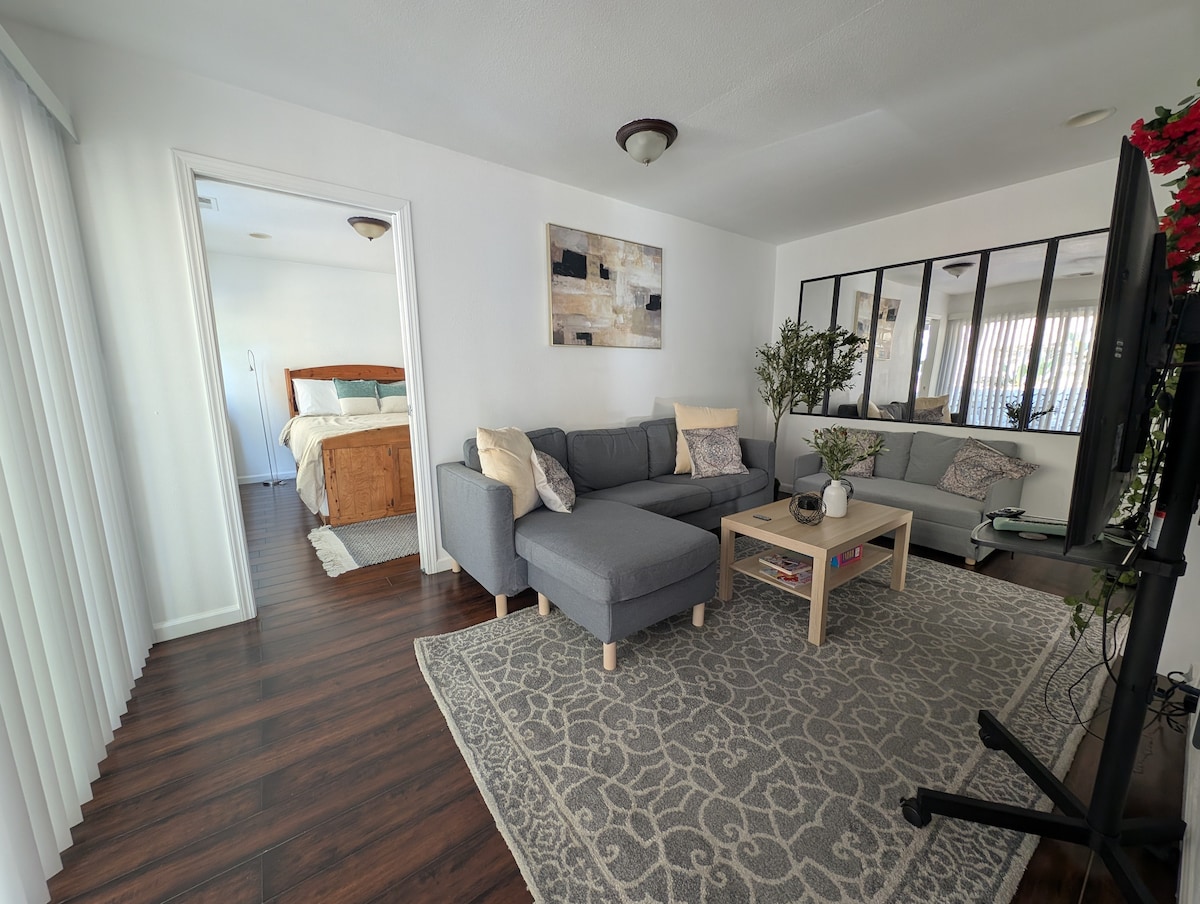 Enjoy a sunny, furnished 1BR/1BA home with private entrance, full size double bed, shower and tub, fully equipped kitchen with dishwasher, dining + living rooms with fireplace, pull-out sofa, Roku TV, Wi-Fi, and in-unit washer/dryer. Located in a safe, walkable Alameda neighborhood near cafés, marinas, shops, parks, ferry to SF, and bus to Oakland Airport. Clean, comfortable, and clutter-free—your perfect home away from home.