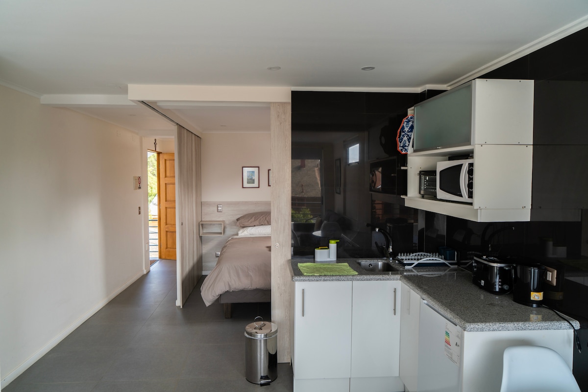 Küref Suites Algarrobo ofrece una ubicación privilegiada, a una cuadra del mar y diez minutos del centro a pie. Las suites son modernas, limpias, y muy funcionales, con un equipamiento ideal para disfrutar de un fin de semana en la playa de forma cómoda y tranquila. Cuentan con baño privado, agua caliente, ropa de cama, breakfast bar, y mobiliario completo. El acceso es totalmente autónomo, así que garantizamos privacidad total. Las suites no cuentan con cocina, ollas ni sartenes.