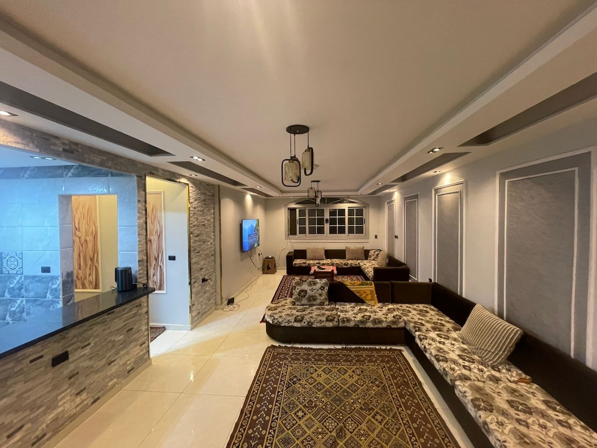 Forget your worries in this spacious and serene space. You will find all what you need around. ●65inch Smart Tv. ●Fair wifi connection. ●Towels, shampoo, Hand soap, dish soap, Toilet paper. ●Coffee, Tea , Bottled water. Special arrangements and decorations are available for extra fees. Private Transportation available for extra fees. Homemade high-quality egyptian food available for extra fees. Feel free to text me if something need to be clear before confirming your booking.