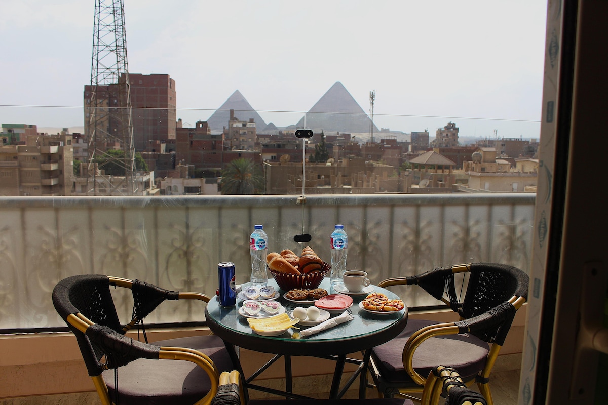 pls contact me before booking to make sure that I still have availability. My apartment has a unique location, a breathtaking view, safe, clean and comfortable apt, you will feel The Egyptian culture in depth in the friendly neighborhood, while you are enjoying a relaxing time on my private roof top watching The Pyramids the building has 2 working elevators