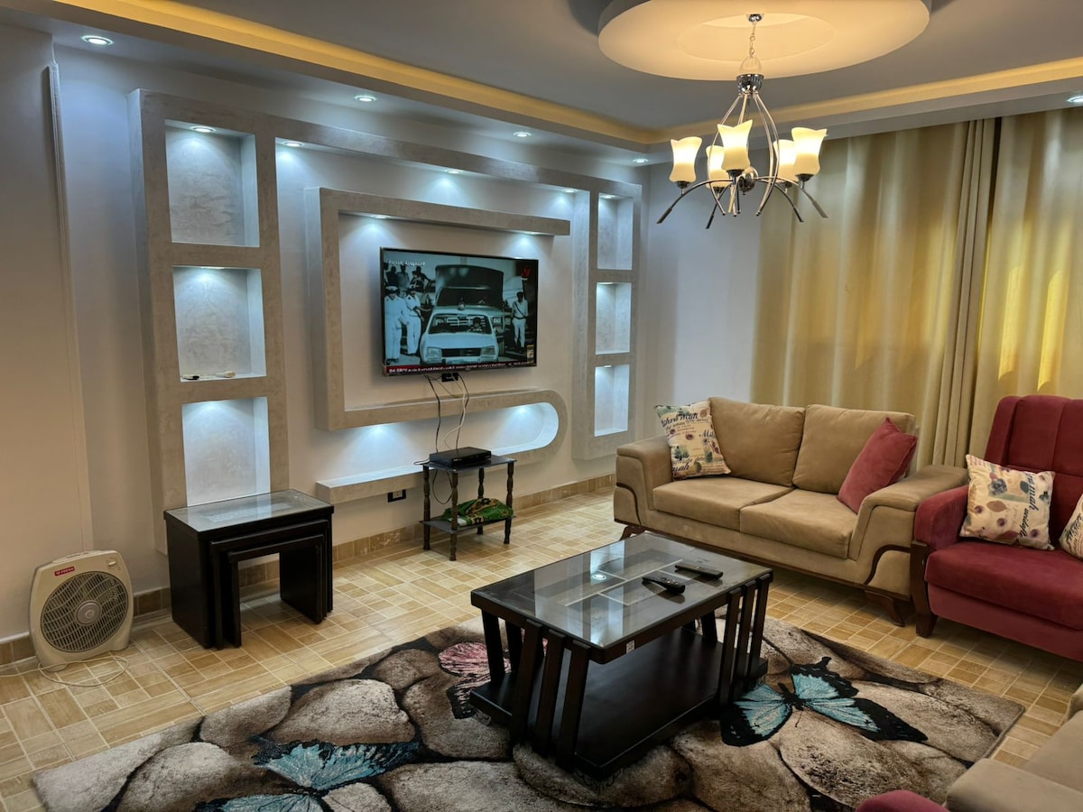 Forget your worries in this spacious and serene space. You will find all what you need around. ●65inch Smart Tv. ●Fair wifi connection. ●Towels, shampoo, Hand soap, dish soap, Toilet paper. ●Coffee, Tea , Bottled water. Special arrangements and decorations are available for extra fees. Private Transportation available for extra fees. Homemade high-quality egyptian food available for extra fees. Feel free to text me if something need to be clear before confirming your booking.