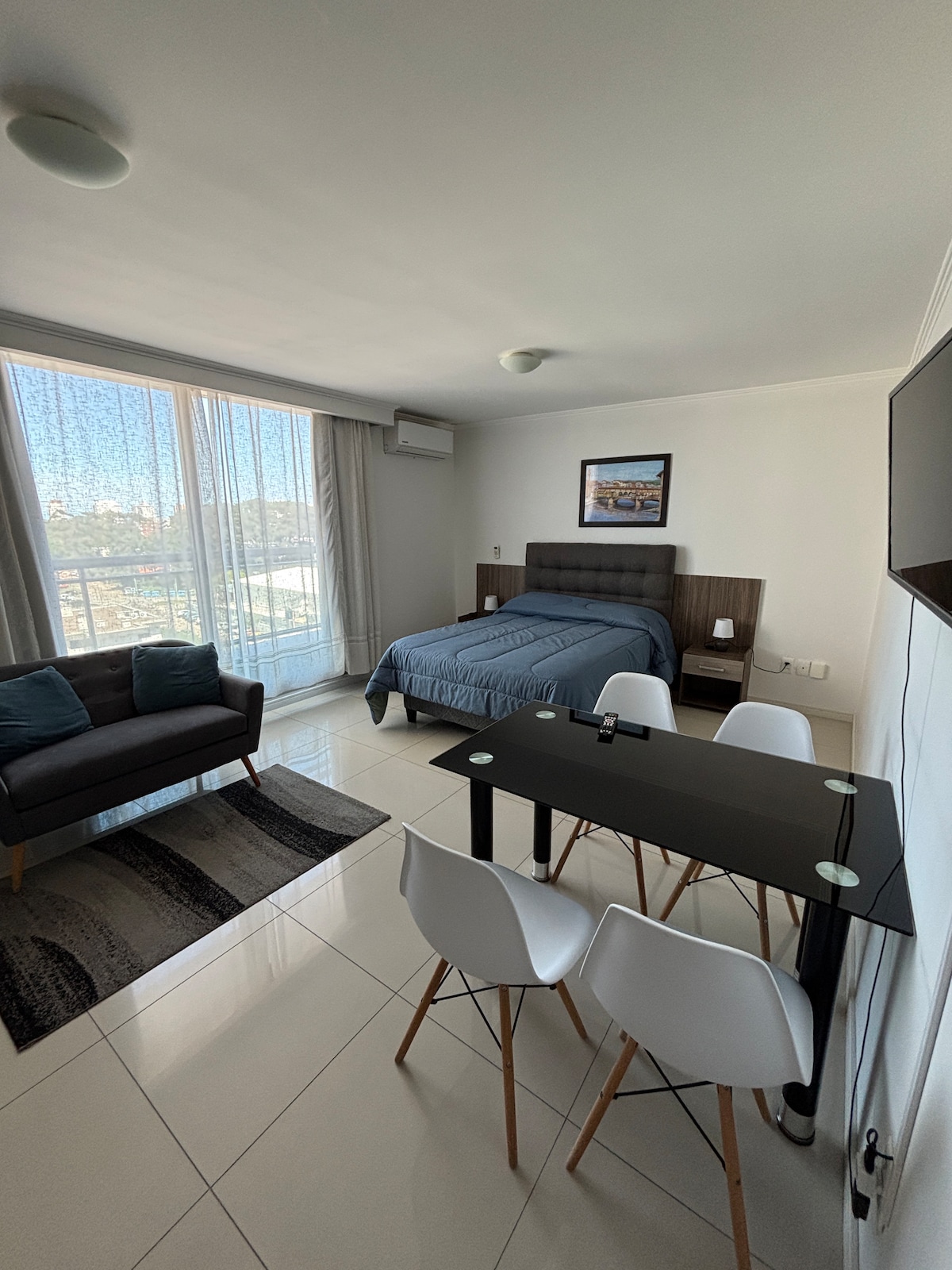 Precioso apartamento con vistas al mar a 120 metros de la playa, 1 dormitorio, living, baño, cocina y balcon, totalmente equipado y super comodo. El edificio cuenta con piscina climatizada interior con un jacuzzi , gimnasio, recepcion, dos piscinas exteriores y parrillero , un parrillero en la terraza con vista a la playa Mansa y la Brava y tambien parking. En una zona llena de restaurantes, mercados y mas. 😊