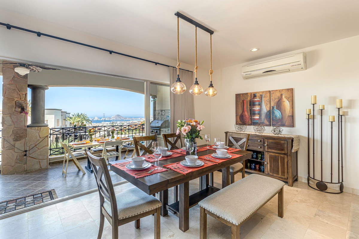 This modern two-bedroom condo is ready to welcome up to 6 guests, who can be a small family or a group of friends. Two spacious bedrooms, a fully functional kitchen, and quite welcoming outdoor patio with BBQ gas grill and indoor areas that provide ample space for everyone to relax. This beautiful condo has amazing views of the Bay of Cabo San Lucas and the Arch.