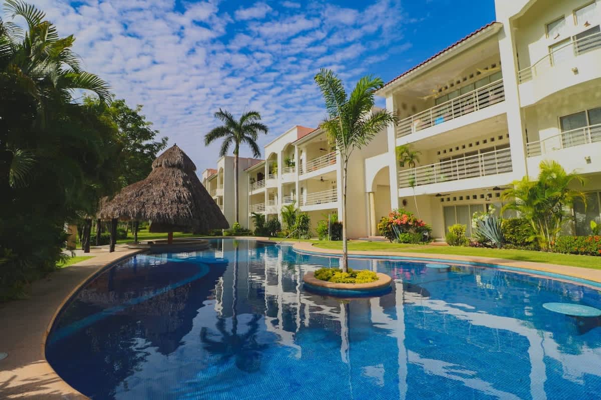 - Free access to the communal pool, lounge chairs & palapa - Free WiFi, private patio with golf course view, a hammock & outdoor dining table - A fully-equipped kitchen with dishwasher & a washer & dryer in the unit, Smart TV - 4.7 km | 3 mi to Nuevo Vallarta Beach & 4.3 km | 2.6 mi to Chedraui (grocery store) - A short distance to the beaches, groceries, shops, restaurants & tons of activities!