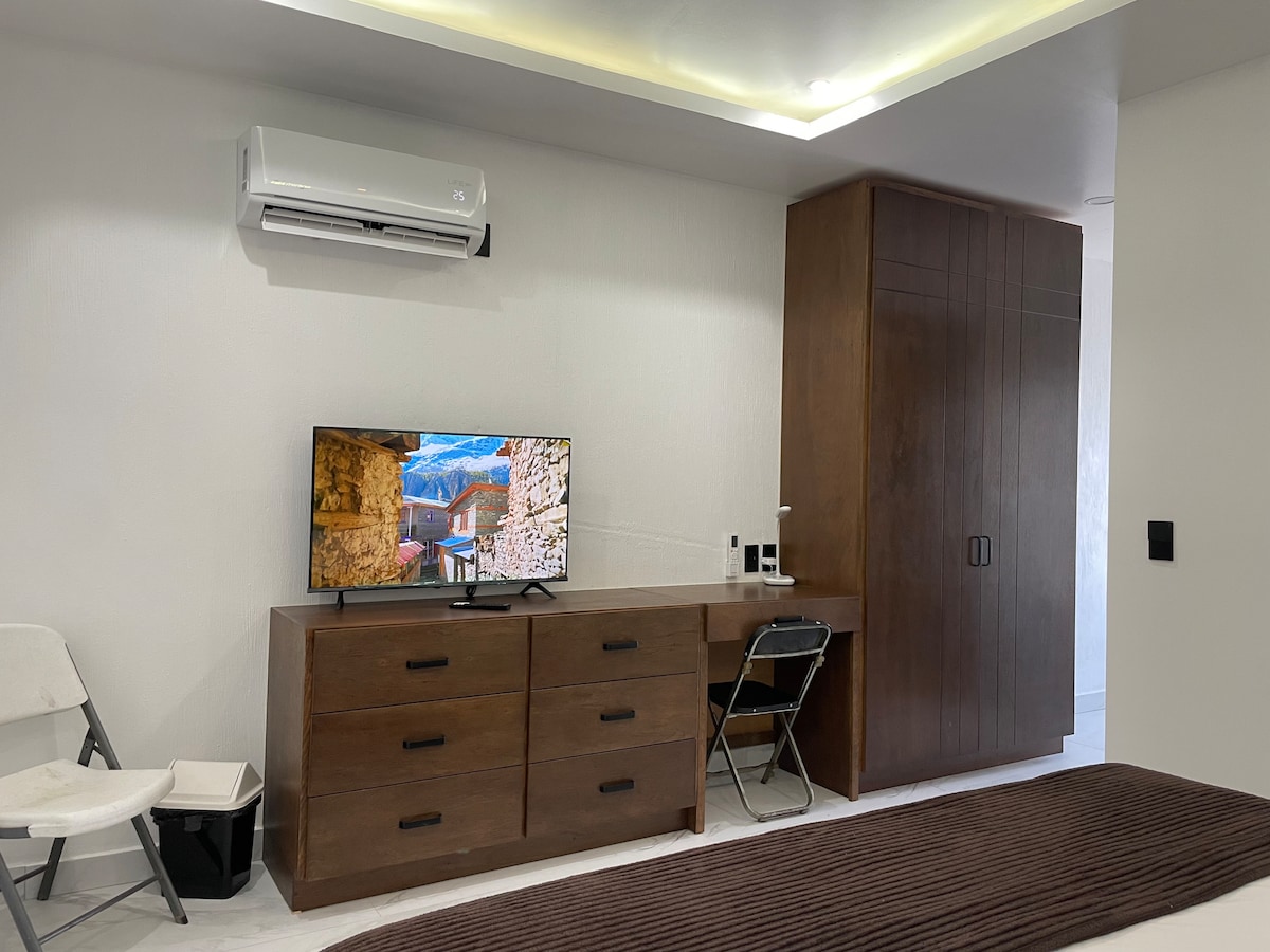 Es un espacio tranquilo, moderno, céntrico, nuevo y acogedor para pasar una excelente estancia corta o larga en la bella ciudad de Zamora El espacio Un Estudio independiente con chapa electrónica para mayor comodidad el cual cuenta con todos los servicios como son AIRE ACONDICIONADO, agua caliente, Netflix, internet de gran velocidad Destacable A tan solo 13 minutos del centro Centro comercial sentura a 10 minutos Bodega Aurrera con Cajero BBVA a 4 minutos Oxxo a 4 minutos