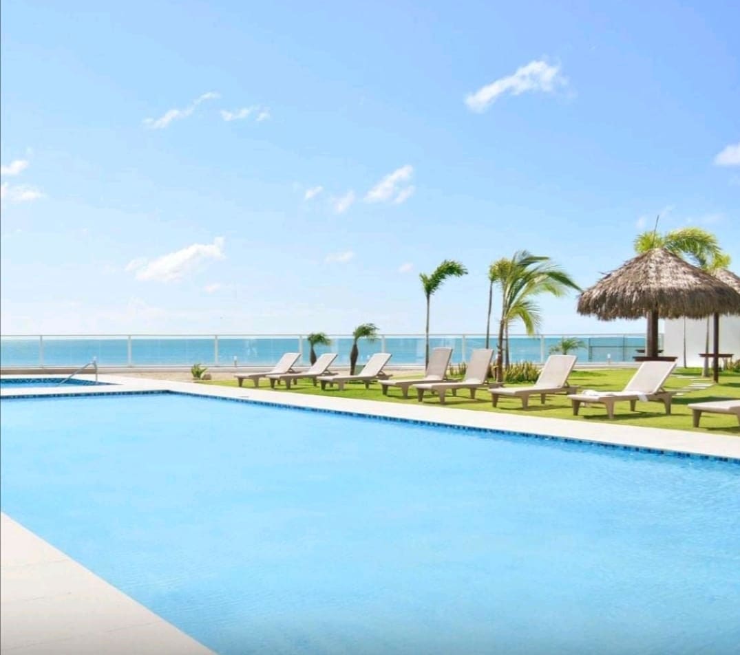 Apto con magnifica iluminación y ventilación natural, amplias vistas, decorado agradable y simple. Área social con piscina, solario, sala de deporte y churrasquera. Internet wifi, tv cable. No tenemos acceso a la piscina grande de agua salada pero si pueden acceder al área de playa reservada para residentes que dispone de asientos, hamacas y sombrillas.