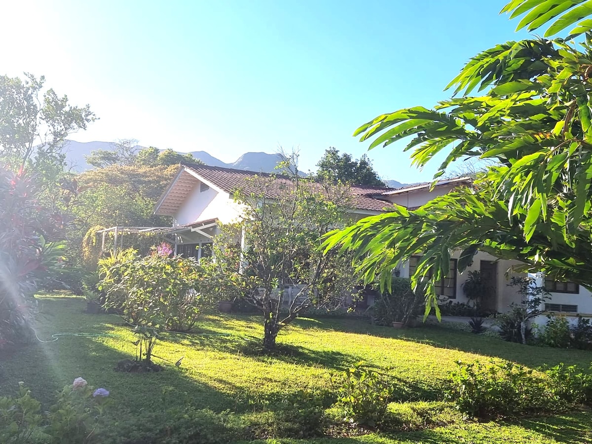 Sencilla pero acogedora. Es una propiedad abierta con estilo campestre. Sus interiores se integran con la naturaleza exterior . La casa es rodeada de árboles de diferentes especies, frutales, aromáticas y un hermoso jardín. Está en un área abierta de 10000 mts de terreno Rodeada por montañas y bosque Vallero y del aire limpio que emite la energía del Cráter de el Volcán Visítanos para una experiencia completamente natural para pasar unos días de relajación perfecta