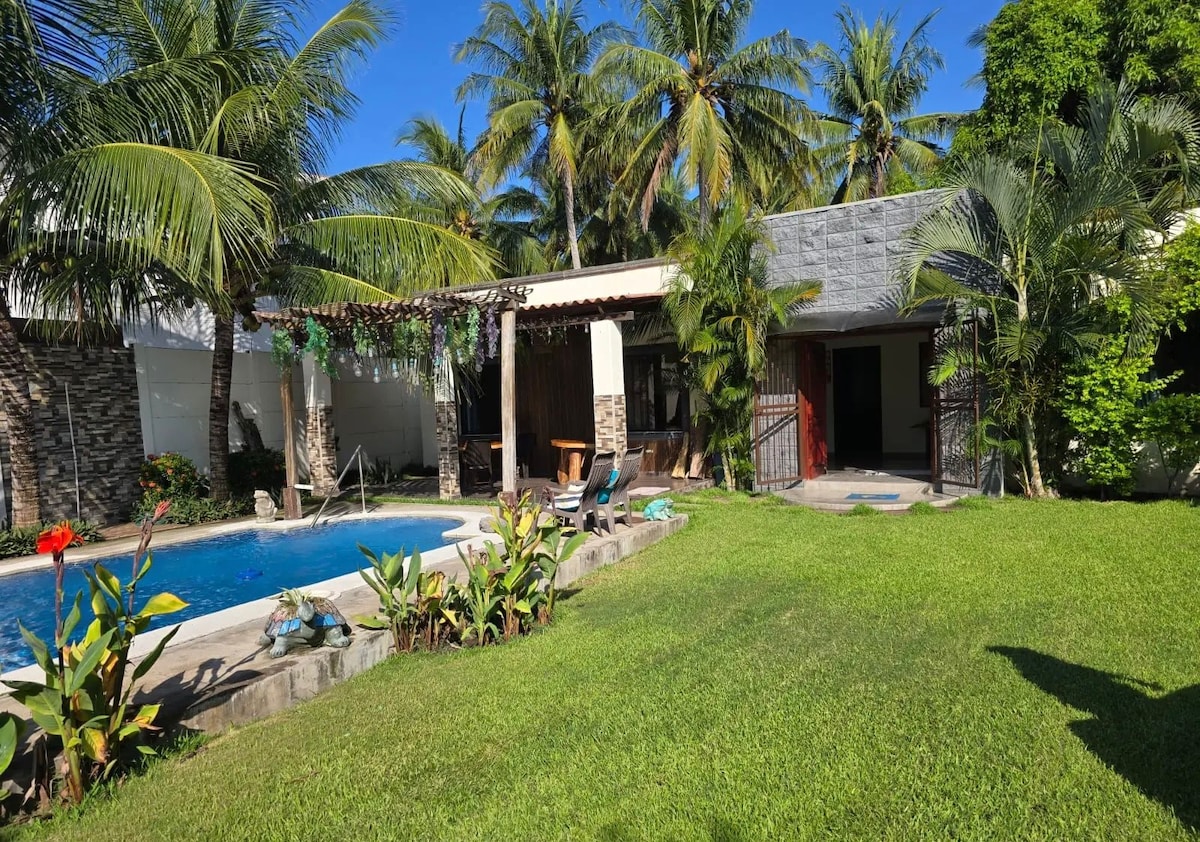 Beautiful and spacious beach house with a private pool located on one of the best beaches in El Salvador ( La Costa del Sol ). This home is open, bright and clean! A perfect space to enjoy with family or friends in addition to a backyard oasis featuring a Jacuzzi and LED lights when the night falls. Take advantage of the peaceful exterior of the house to unwind after a long day and listen to the relaxing sounds of the ocean nearby. Paradise awaits you!