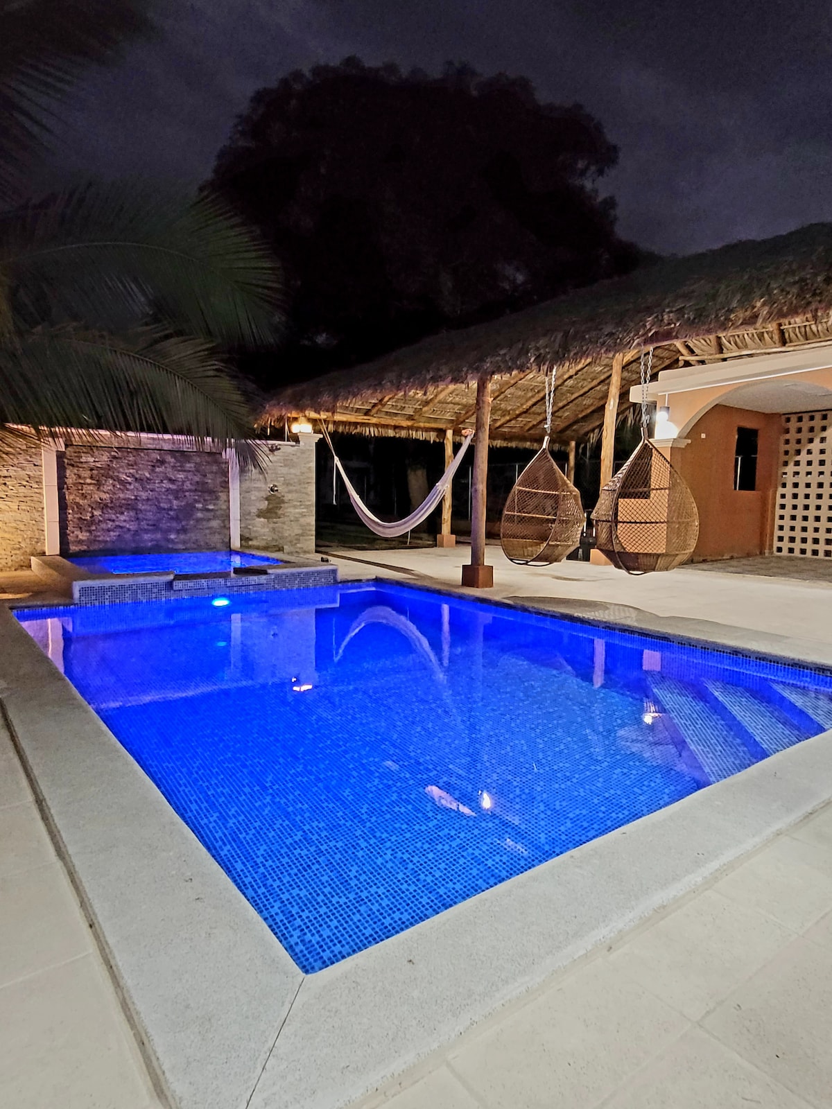 Casa Bali: Tu Paraíso en Costa del Sol Disfruta una experiencia única en esta casa con estilo tropical. Cuenta con 4 habitaciones, 3 baños completos, 2 duchas, sala, comedor y cocina totalmente equipada. Relájate en el jacuzzi, sumérgete en la piscina privada y vive momentos inolvidables en un entorno diseñado para el descanso y la tranquilidad. Ideal para escapadas románticas o reuniones familiares. ¡Reserva hoy y vive el lujo tropical que mereces!