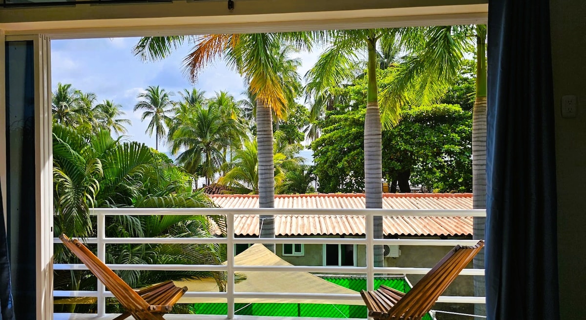 Casa LunaMar is located on the quiet El Zonte beach, excellent for surfing. We offer a comfortable and independent stay in a two-story house 50 meters from the beach, with 73 MB Wi-Fi, equipped for long stays and remote work. On the first level, there is a garden with palm trees, ideal for relaxing, and a terrace with an outdoor dining area. On the second level, there is air conditioning, a large sliding door, and a balcony with ocean and garden views.