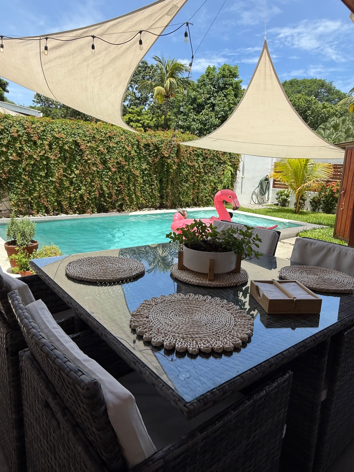 Welcome to Kira's paradise, located in the complex Xanadu. A newly renovated home w/ an infinity pool and short 5 min walk to the private beach. We are just 6 minutes from el Tunco and 12 mins Sunset Park. There are 4 bedrooms: main bedroom + 3 additional bedrooms + 9 beds in total 2 full bathrooms Two kitchens: indoor kitchen w/ oven and stove + outdoor kitchen with grill. Finally, our infinity pool has a hammock with three hammocks + lounge set.