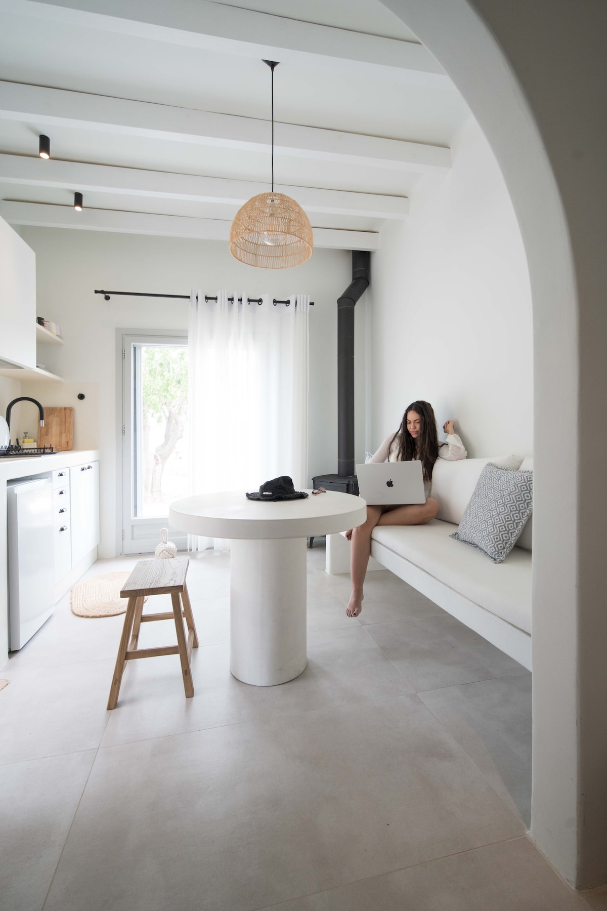 Set just above the sea, The Attic opens naturally toward the balcony and the open view of Monemvasia’s rock. Light, natural materials and an open layout shape a calm, unforced space where time slows down and the boundary between inside and outside feels effortless. It’s a place for quiet stays and easy days, with evenings that feel just as comfortable indoors, always connected to the sea beyond.