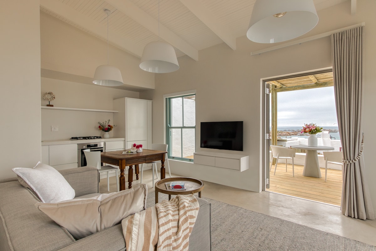 Aan’t See House and Apartment is situated in the quiet seaside village of Lambert’s Bay, and offers comfortable self-catering accommodation in a 2-bedroom house ( 1x king size and 2 single beds) and a 1-bedroom apartment (1x king size/ 2 single beds). Both the house and the apartment offer lovely sea views. The house and apartment is built on the rocks, with a small gate separating it from the sea.