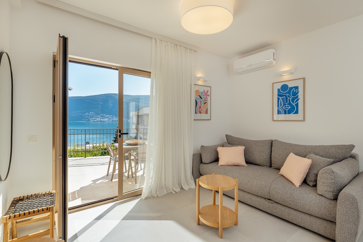 Welcome to Tamaris, a cozy apartment on the seaside promenade! 🌊 Enjoy stunning bay views through the glass wall in the living room, where the sofa converts into a comfy bed. The modern kitchen is fully equipped for longer stays, and the luxurious bathroom with a rainfall shower offers a spa-like retreat. Renovated in 2022, it blends style and comfort. Note: In July and August, vibrant nightlife and evening noise make it ideal for younger guests who enjoy lively summer vibes! 🎉