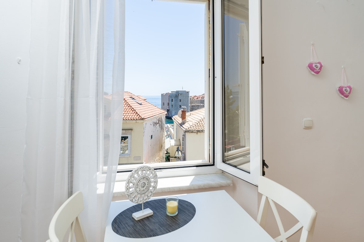 This newly renovated cozy studio is located in the very center of the city, 3 minutes away from the old town. Located in a very quiet and peaceful area it makes a perfect base for exploring the city within walking distance! Cable car, Old town, Banje beach, Lokrum island, supermarket, museums, bars, restaurants, clubs, everything is within 15 min walking. The space is complimented with a private balcony w sea view where you can enjoy your breakfasts or have a glass of wine in the evening.