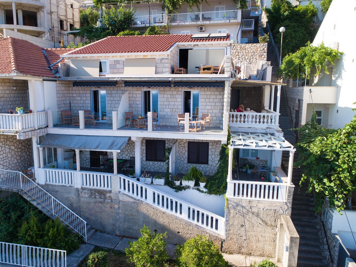 Relax in this beautiful 1913 loft! The house was lovingly built with stone, beamed ceilings, and antique elements for a grand yet charming feel. Unobstructed view of old town and endless Adriatic sea are at your fingertips. The house is situated on Ploce Gate, one of the Old Town's two main entrances. Despite the fact that we are in the heart of the city, the place feels tranquil and remote.