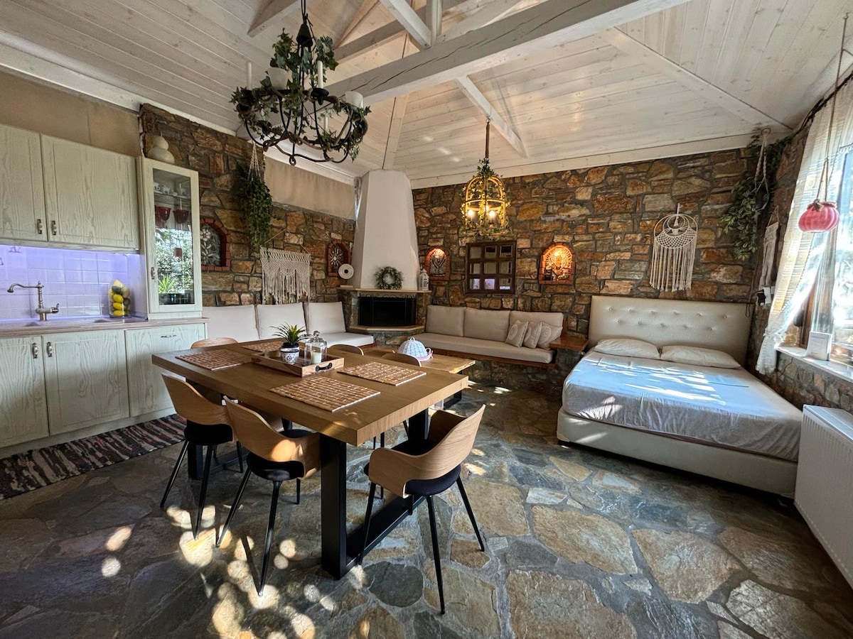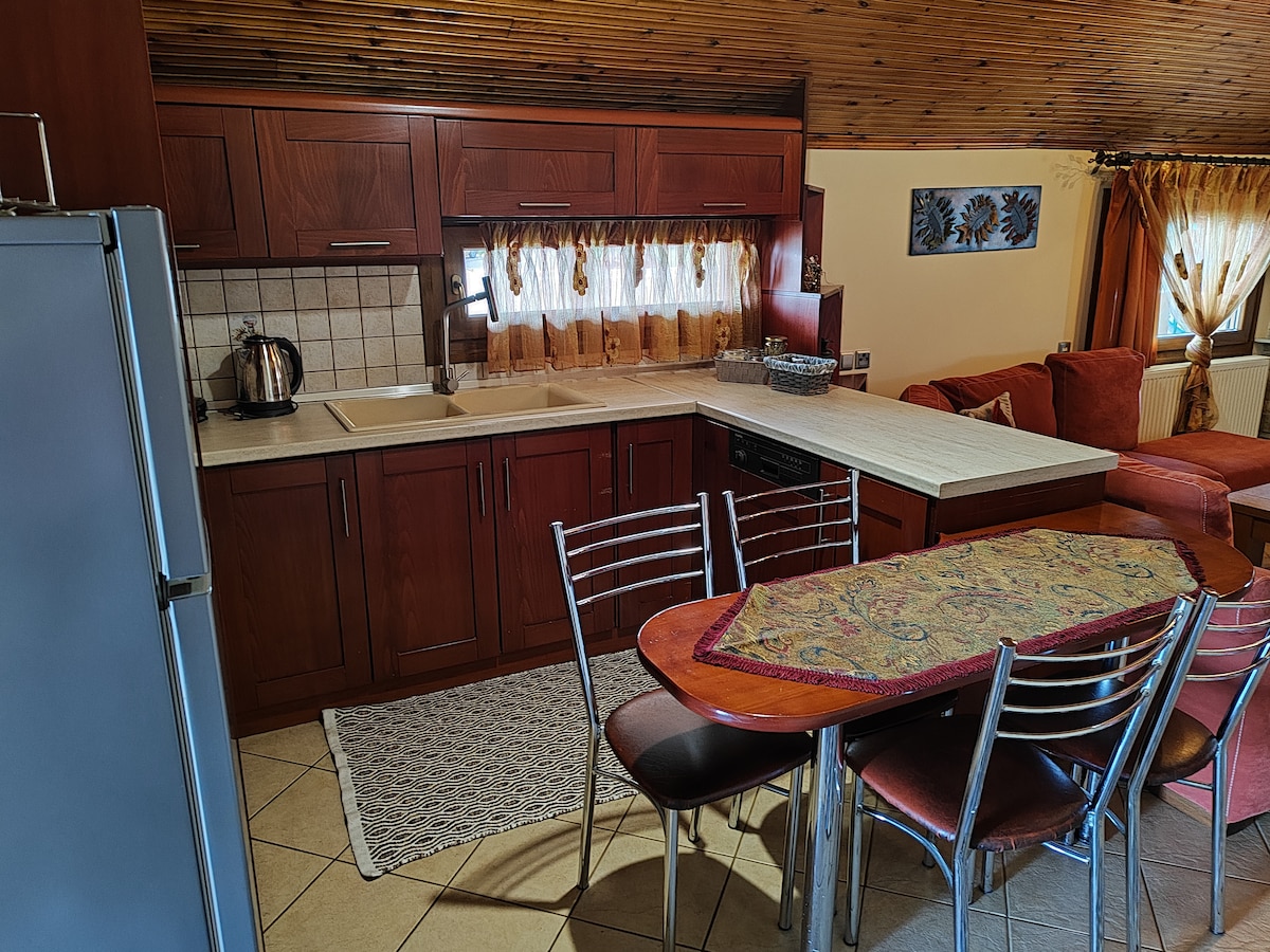 Live a unique accommodation experience in a wooden house that combines natural beauty with comfort and luxury. With refined aesthetics, fully equipped interiors, and a charming green garden with a BBQ, it is the perfect getaway for families, couples, or small groups seeking moments of relaxation — just 450 m from the center of Velvento! ☕ Packaged products for a simple breakfast are also provided (coffee, tea, rusks, jam, honey, etc.).