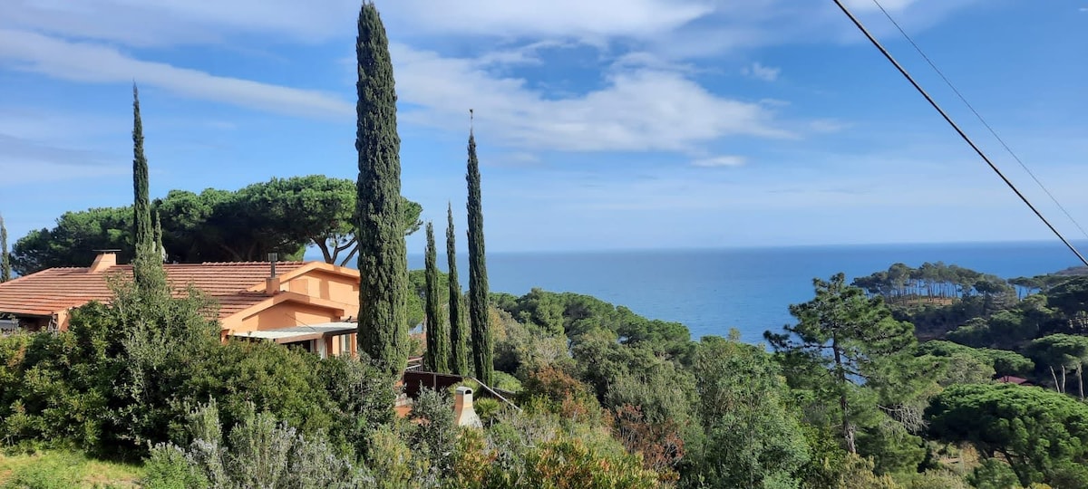 Delizioso appartamento arredato con cura, in stile etnico, provvisto di ogni comfort, in un casolare appena ristrutturato secondo i principi della bioedilizia, immerso nella macchia mediterranea del più bel versante dell'isola d'Elba, con vista mozzafiato sull'arcipelago toscano e sulla Corsica, a 250 m sul livello del mare, dominante la spiaggia di Cavoli. L'appartamento è composto di soggiorno con angolo cottura e divano-letto per due persone, camera matrimoniale e bagno con doccia e ampio spazio esterno attrezzato per pranzare e prendere il sole. Il luogo è raggiungibile con una strada sterrata di 2,5 km dal paesino di San Piero in Campo (fin dove arrivano i mezzi pubblici), distante pochi minuti di macchina dalle spiagge più incantevoli dell'isola (Cavoli, Seccheto, Fetovaia) e dal centro turistico e commerciale di Marina di Campo. E' consigliabile disporre di un mezzo proprio. La casa è immersa nella tipica macchia mediterranea alternata a grandi e suggestive scogliere di granito. Il grande giardino è recintato, contiene un orto e un uliveto. Non vi sono altre abitazioni nei dintorni. Intorno alla località si snodano i più suggestivi sentieri per gli amanti del trekking e della mountain bike. Ideale per chi è in cerca di silenzio, relax, aria pura, e ama la natura e i luoghi un pò speciali. I padroni di casa potranno aiutarvi per ogni evenienza e perplessità. BREATHTAKING VIEW ON THE ARCHIPELAGO Charming apartment,furnished in ethnic style,with every comfort,in an old cottage just renovated according to the bioarchitecture,amidst the Mediterranean bush in the most beautiful part of Elba island with breathtaking views on the Tuscan archipelago and (email hidden) a.s.l.,overlooking famous Cavoli beach. The apartment has a living room with kitchenette and divan bed for two persons,a double bedroom and a bathroom with shower and a large outside patio for eating and sunbathing. You can reach the place through a 2,5 Km dirt road from San Piero in Campo,where pubblic transport ends,and from where ,in few minutes by car you can get to the best beaches of the island (Cavoli,Seccheto,Fetovaia etc.),and to the touristic and service centre of Marina di Campo. It's better to have your own car or motorbike(you can rent it anywhere on the island). The house is surrounded by the typical mediterranean bush scattered with huge granite cliffs. The large garden has an olive grove and a vegetable garden. The place is secluded and there are no other houses in the surroundings. It's an ideal place for trekking and mountain biking and lovers of relax,peace,nature and special places. Your host are ready to help for any need and request.