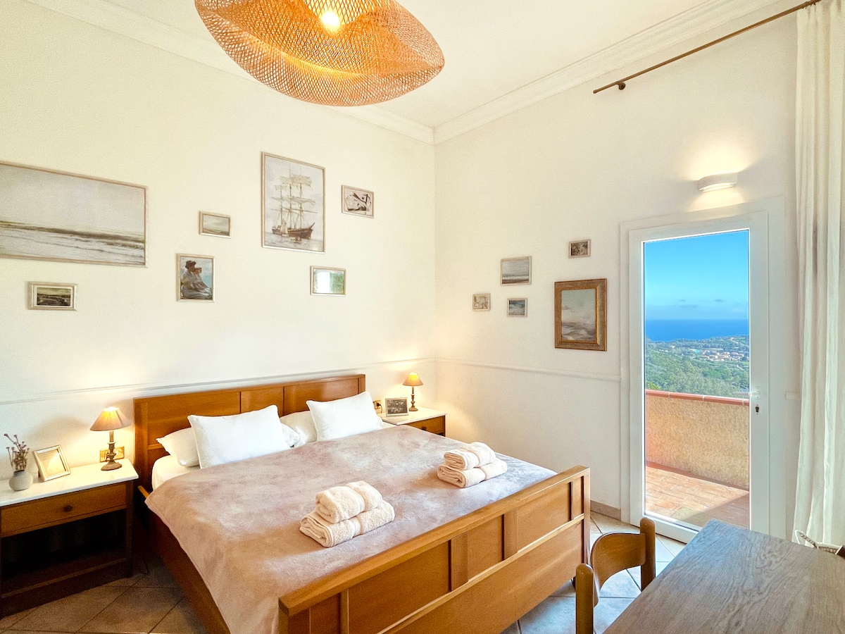 Bilocale in villetta di 70mq in splendida posizione in collina tra Marina di Campo e la magnifica spiaggia di Galenzana nel meraviglioso parco dell'Arcipelago Toscano. L'appartamento vista mare è composto da un ampio salone con due divani letto, uno da una piazza e uno da due. é presente un'ampia cucina e camera con letto matrimoniale. Dispone di posto auto privato esterno. Dalla casa é possibile raggiungere a piedi in cinque minuti due spiaggie: Marina di Campo e Galenzana.