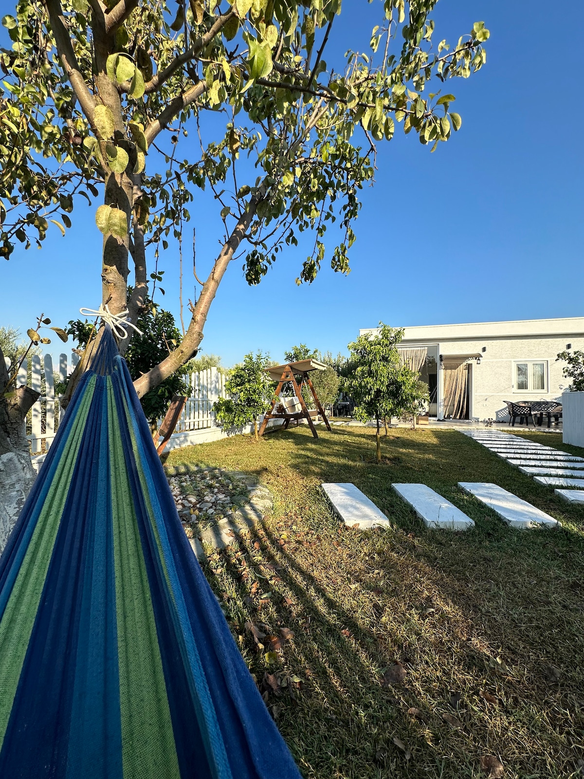 Kick back and relax in this calm, stylish space. The house has been designed by a well known architect who has curated every detail. It has its own private garden with swimming pool and a lot of flowers. It is part of a luxury residence just 10 minutes drive from the center of Tirana. The residence offers 24h survellance, gym, restaurants and cafes, ATMs, laundry services, running trails, etc and is set on a small hill where the air is really fresh.