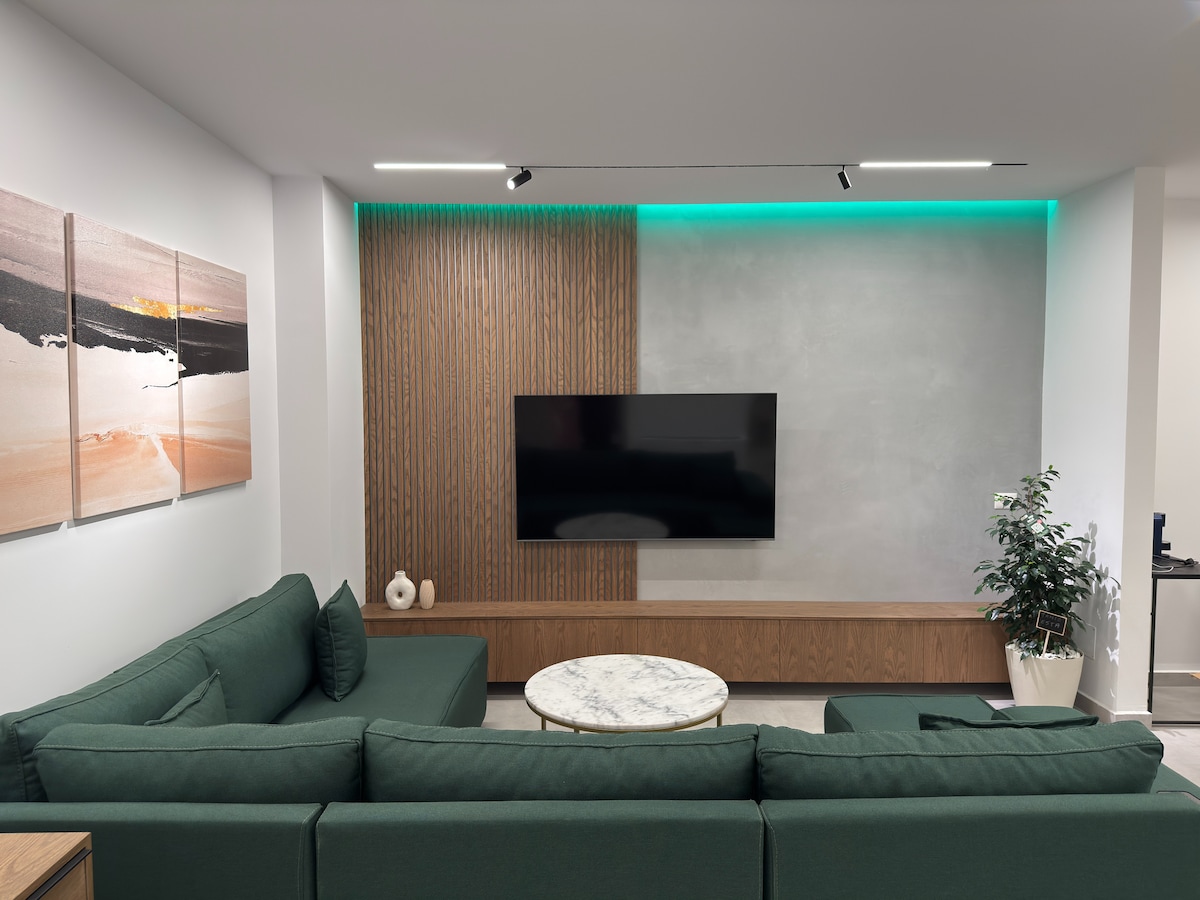 Modern and cozy studio, perfect for a couple or a couple with one child. Features a spacious bed, sofa, fully equipped kitchenette, and a 65’’ Smart TV with Netflix. Stylish design, comfortable atmosphere, and central location – ideal for your stay! This unique place has a style all its own.