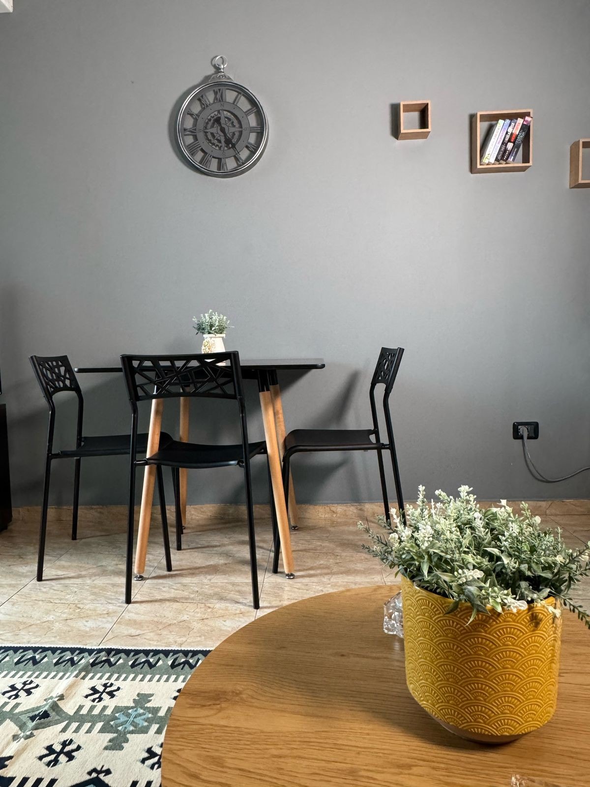Newly furnished special condo in Central Tirana (5 min walk from Skanderbeg Square). Enjoy comfortably a calm modern relaxing space while visiting Apartment on the 4th floor and there is no elevator so please consider. We can help with bags. Pool, Gym, Sauna extra 2 min walk at Black Diamond hotel The furniture and design aimed for maximum comfort The area is safe and quiet 8 min walking distance to the center and the main public transportation and shuttles to airport or any main location