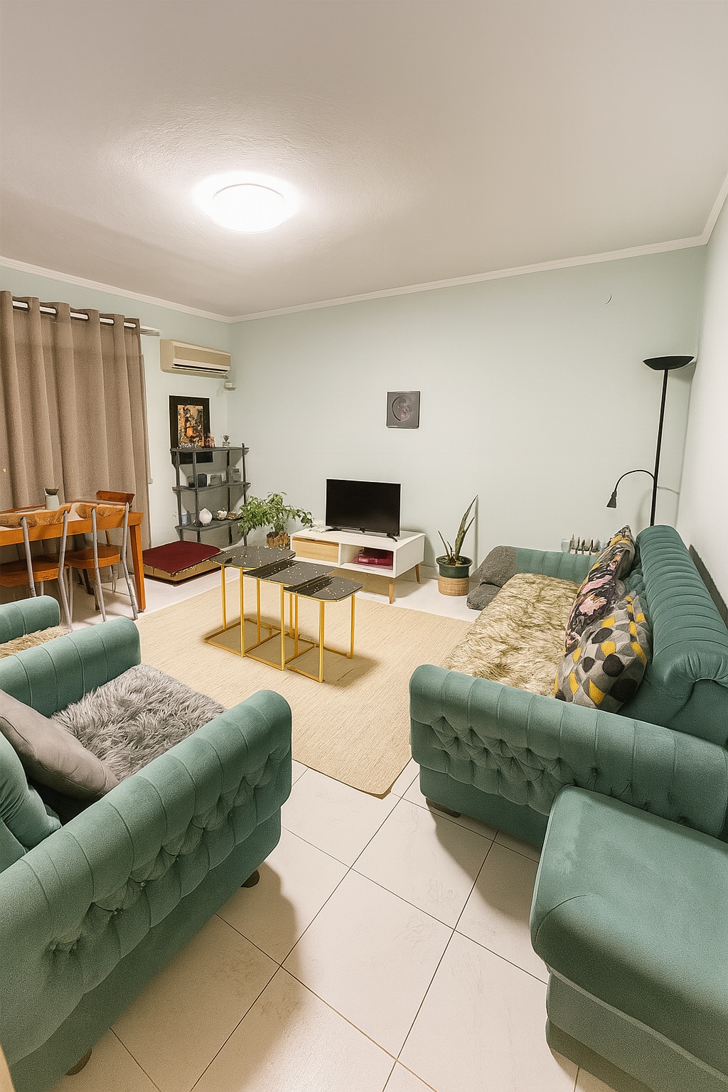 Benvenuti nel nostro appartamento situato vicino al vivace centro di Tirana! Questo spazio affascinante vanta abbondante luce naturale, che illumina i suoi arredi e crea un'atmosfera calda e invitante. L'appartamento dispone 2 camere da letto ,bagno elegante, una cucina completamente attrezzata e un accogliente soggiorno per rilassarsi dopo una giornata trascorsa esplorando la città. Situato in una posizione privilegiata, ti ritroverai a pochi passi dalle vivaci strade di Tirana.
