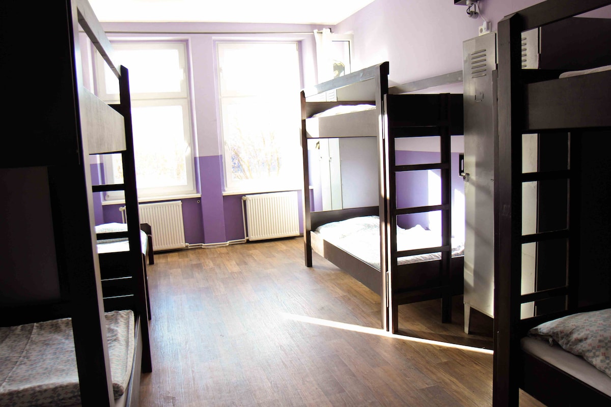 This is a room only for woman! Our six-bed rooms have 2 single beds and 2 bunk beds. There are lockers where you can store your luggage. If you don't have a lock with you, it is possible to rent one at reception. There are reading lights and power sockets at each sleeping area, as well as a small table and chair. The rooms are on the first and second floors (no elevator). Shared showers and toilets can be found on each floor.