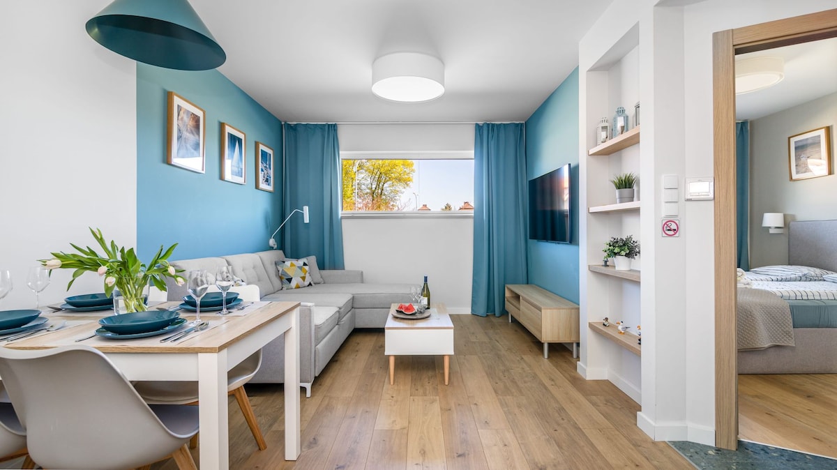 Odpręż się i zrelaksuj w spokojnej, stylowej przestrzeni nowego, komfortowego apartamentu -urządzony dla "siebie" w duchu nadmorskim. Z balkonu widok na Zalew Wiślany, w Starym Porcie Rybackim, trasa spacerowo- rowerowa za płotem, do morza około 1 km nową i oświetloną nocą ścieżką. Lokalizacja w ścisłym centrum - blisko to sklepów, restauracji i atrakcji miasteczka a mimo to zawsze cicho i bezpiecznie. Posesja i parking ogrodzone, budynek monitorowany, dostęp elektroniczny - kod, winda.