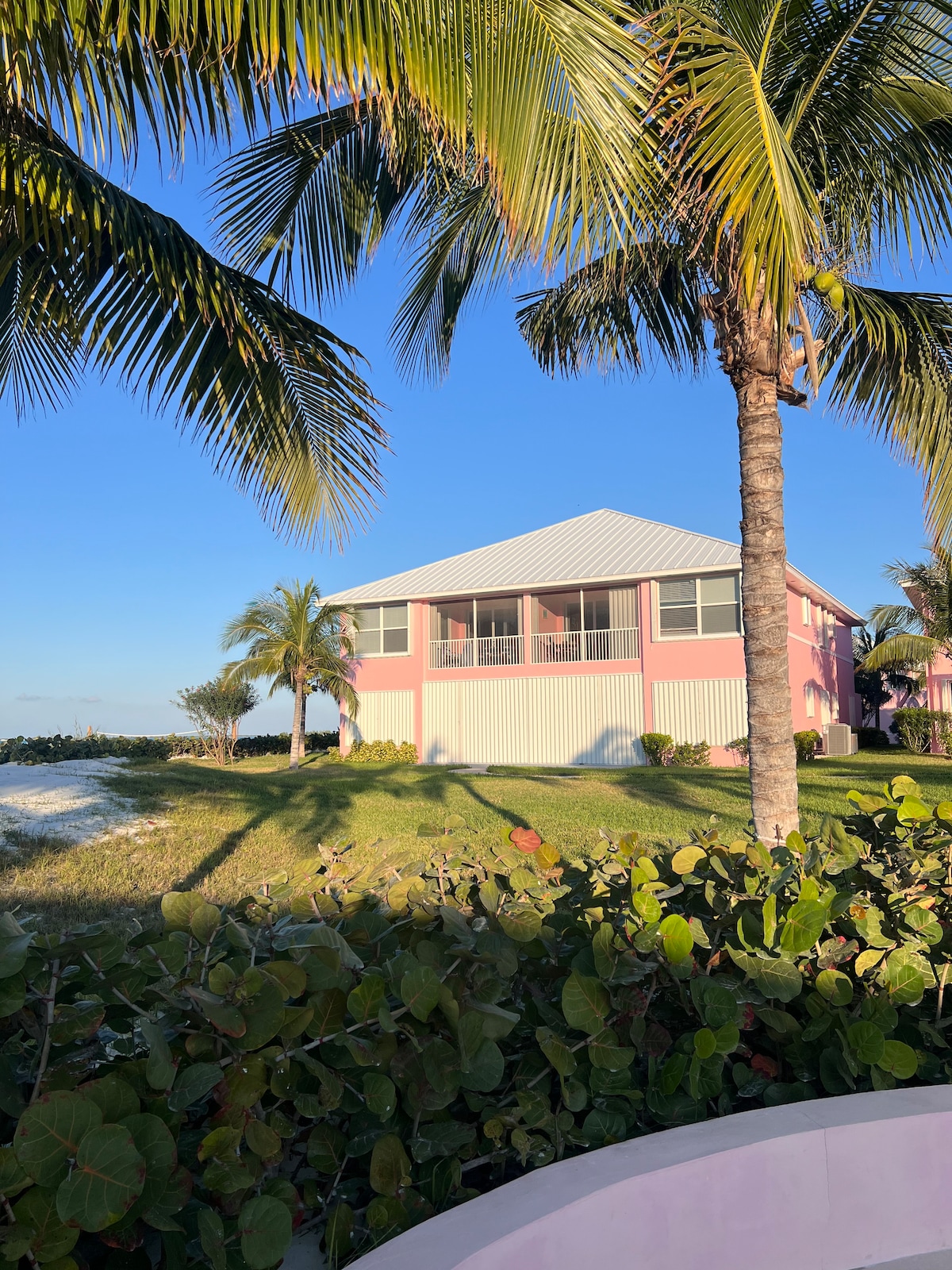 This newly rebuilt villa is just a two minute walk away from the white powdery sand and turquoise water of the world famous 3.5 mile Treasure Cay beach. This villa comes with 2 bedrooms one with a king bed and the second bedroom with two twin beds that can be converted to another king bed, 2 full bathrooms, fiber high speed internet (100/ 50), 3 SMART TV's with cable and great outdoor patio spaces with tables, lounge chairs and a BBQ. Relax and enjoy !! 5% weekly and 10% monthly discounts !!