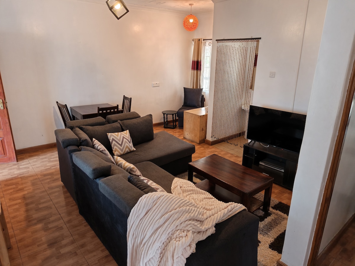 Welcome to our 3-bedroom, 2-bath BnB located in a peaceful neighborhood. The property offers easy access to the airport and Eldoret town, and has ample parking. Enjoy self-check-in, fast Wi-Fi, and a smart TV in the spacious living room. The master bedroom has an en-suite bathroom, and there's a fully equipped kitchen with an access to a backyard. Guests have access to a shared swimming pool and gym. The host is available for assistance. Enjoy comfort, security, and convenience during your stay.