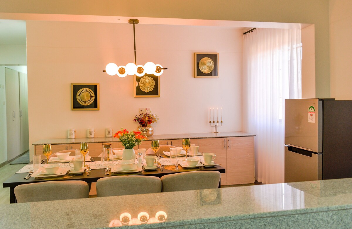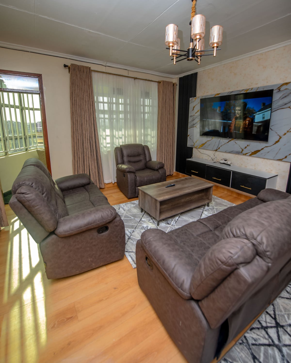 Welcome to our 3-bedroom, 2-bath BnB located in a peaceful neighborhood. The house offers easy access to the airport and Eldoret town, and has ample parking. Enjoy self-check-in, fast Wi-Fi, and a smart TV in the spacious living room. The master bedroom has an en-suite bathroom, and there's a fully equipped kitchen with an access to a backyard. Guests have access to a shared swimming pool and gym. The host is available for assistance. Enjoy comfort, security, and convenience during your stay.