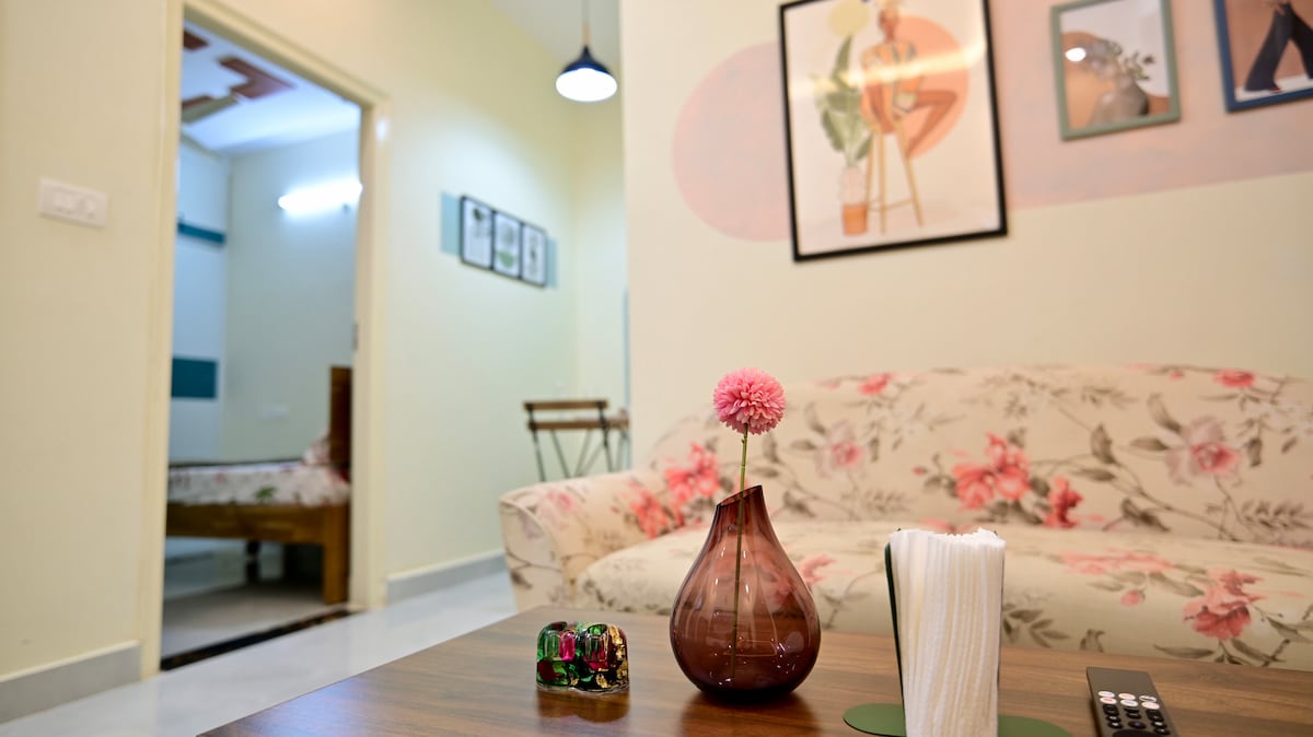 Clam 1-Bedroom Retreat ☀️ Experience home away from home in our breezy 1BHK with stunning views, ideal for professionals and families. Located near Infosys & Wipro, enjoy modern amenities: washer, fridge, microwave, stove, kettle, coffee maker, Wi-Fi, 55” smart TV & table tennis. Pet-friendly, gated society for added security. Unwind on the balcony with panoramic views. Book now for the perfect mix of comfort, convenience & tranquility!
