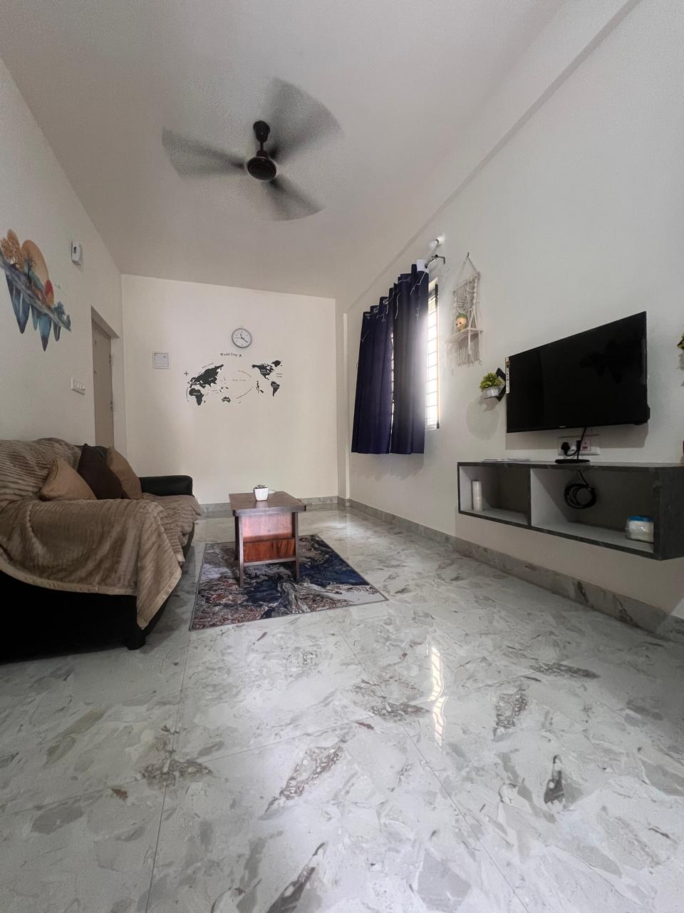 Welcome to your perfect home-away-from-home in the heart of Whitefield! This stylish and fully furnished 1-bedroom, 1-bathroom apartment is ideal for both business travelers , couples and families seeking comfort, convenience, and connectivity. Property Highlights •Wi-Fi Available •Free parking •Fully equipped kitchen •Smart TV in stylish living area •Continuous water & electricity •Dedicated workspace
