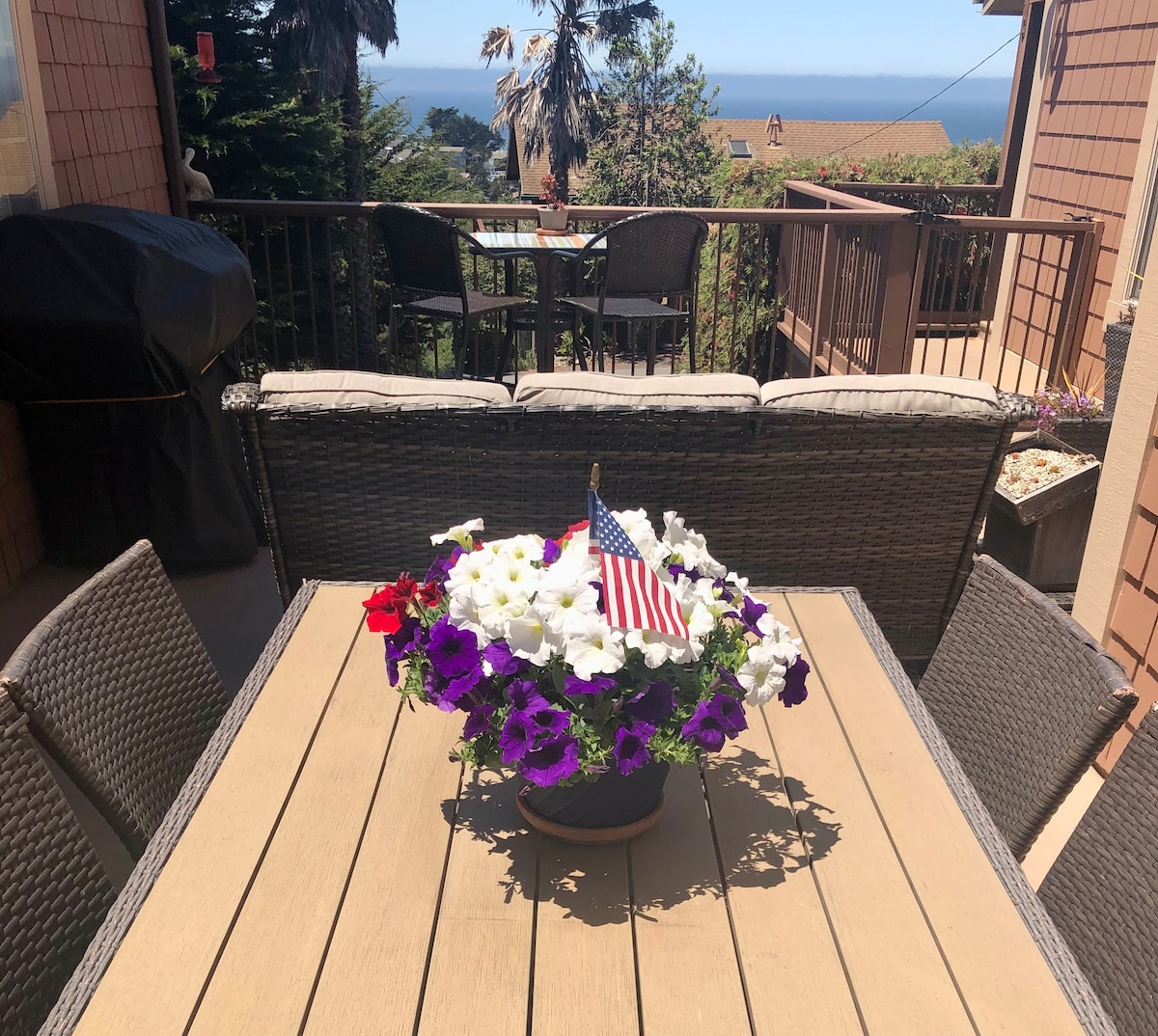 Guests just love the privacy and surrounding beauty of our upstairs guest cottage overlooking a lovely forest to the Pacific Ocean (please check out our 600+ 5-star reviews). Our sparkling-clean suite has it all: comfy charm, peace and quiet, abundant wildlife, private entrance, panoramic forest / ocean views, gorgeous sunsets, fresh cotton linens, micro kitchen, dedicated off-street parking and great mesh WiFi for remote work. All this and the marvelous Central Coast just outside your door.