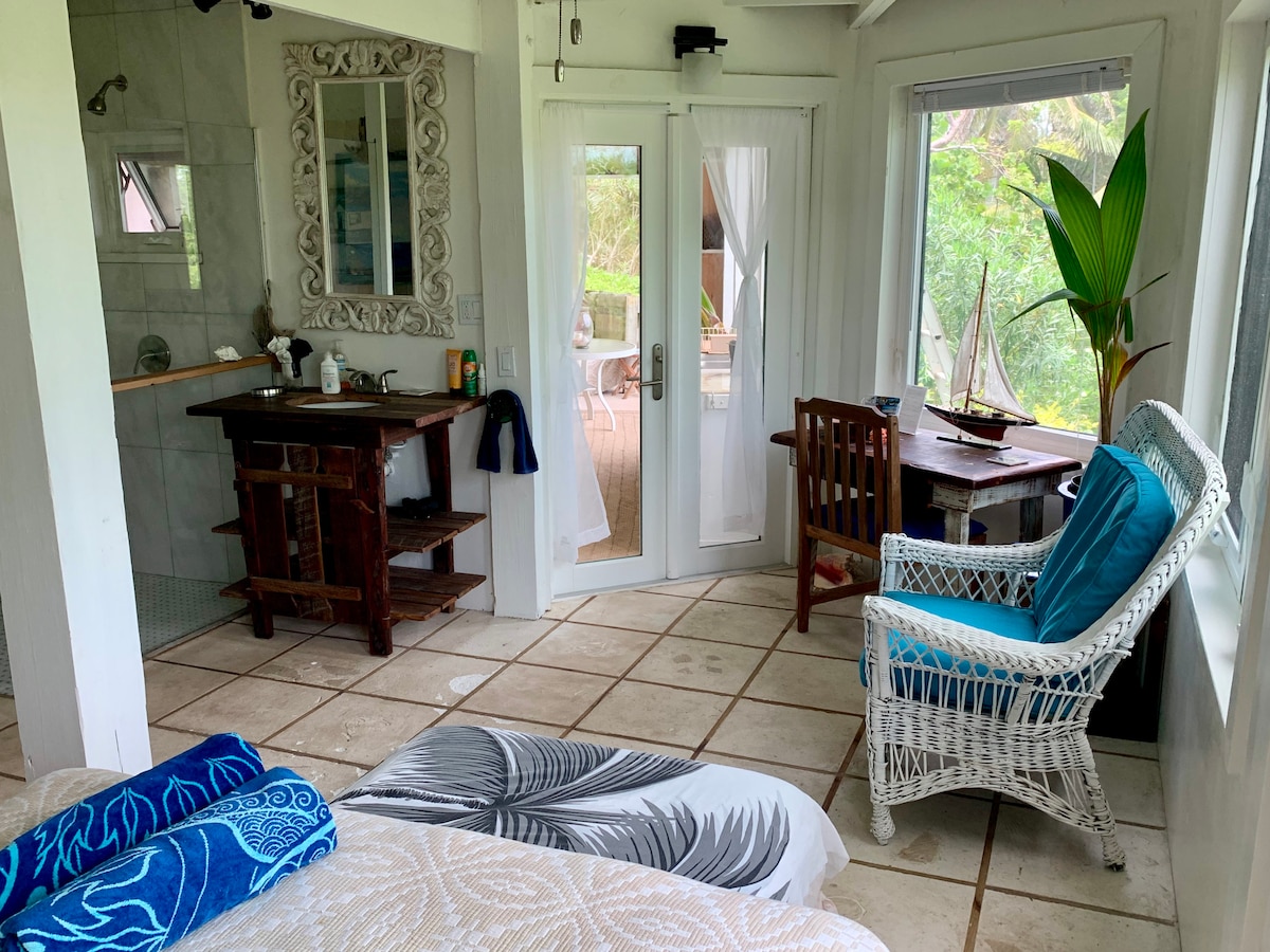 Live life like a local! Centrally located on Spanish Wells close to the beach, restaurants and grocery store. Cay Casita is an island style tiny house (studio apartment layout) perfect for a mellow and stress free getaway. Multiple amenities included with your stay is use of bicycles, stand up paddle board, gas grill, a well stocked kitchen ,beach stuff, large covered patio space, free Wifi high speed internet and a spacious outdoor shower.