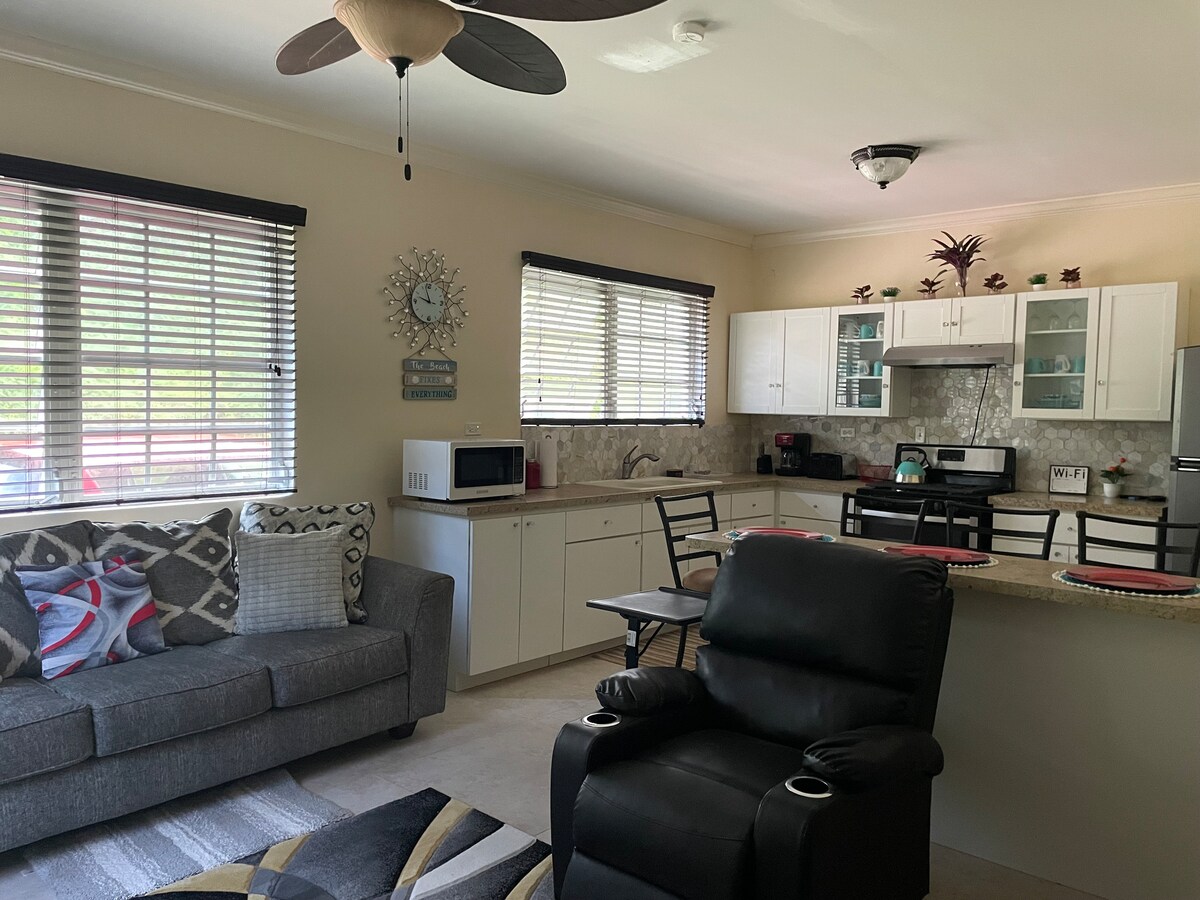 Seabreeze Unit is one of 4 units of Thompson's Seaside Villa .......(totally accommodates 12 adults). Seabreeze is a separate 1 Bedroom Unit which gives you a view of the Caribbean Sea right from your bed. Ideal for a couple's honeymoon, anniversary, vacation or get-away. The unit has Queen Bed & Shower facility, 2 seat table, 2 burner Stove-top cooking, Microwave. Coffee maker, toaster, iron & iron board, Flat screen TV, Cable, WiFi, Linens, apartment size fridge, silverware, kitchen utensils