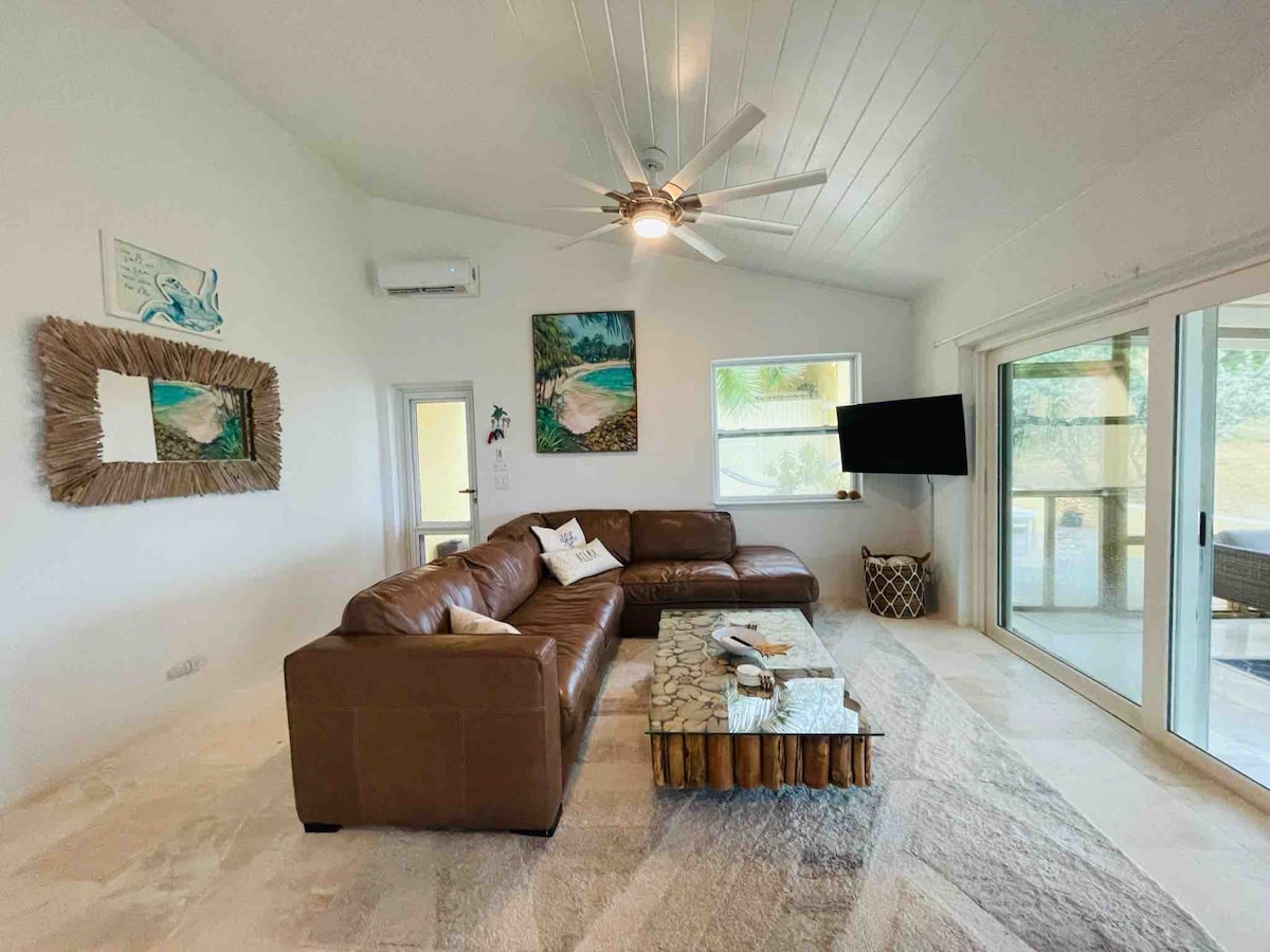 Beautiful waterfront 3 bedroom 3 bathroom house on the North Beach in Current. Over 2500 sq ft of indoor and 1500 sq ft of outdoor living space with amazing ocean views. Travertine throughout house, modern granite chef inspired kitchen. Everything you need to cook up amazing meals. Outdoor living space includes hot tub, sauna, tv, outdoor kitchen, sun deck and outdoor fire pit. Perfect for morning coffee, sunset cocktails, or just relaxing with the sun and sea. Whole house 20kw diesel generator.