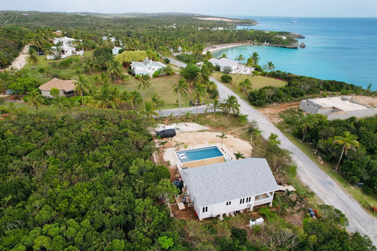 **NEW POOL**RAINBOW CHARM is a unique and Luxurious estate feeling property Direct Ocean on the Carribean side of Eleuthera! If you were looking for a home with the most amazing ocean views from every room- you found it! This property is a 3 bdr/2.5b A frame loft home that boasts many activities. Please message for full list of activities! Dual outdoor shower with ocean view, washer & dryer, dock seating, Swings, bikes,GAMES, hammocks, gas grill, and many more features! Rental car available!