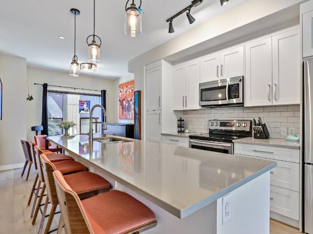 This rare south facing new build end unit townhome is conveniently located within 10 min walk of downtown. From the private entrance/garage; you walk up to the main living area where you will find unobscured views of the most prominent peaks in the area. Views this good are hard to come by & can be enjoyed on the patio! The entire space is designed to be bright, spacious, & comfortable. Private garage and central A/C make this property stand out from the rest! Canmore BL# HM1-08486