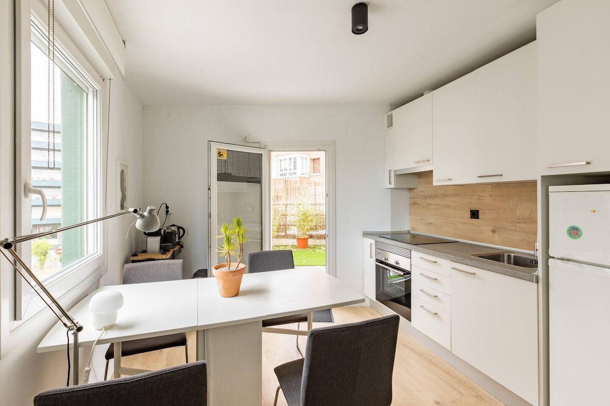 Este es Bikain Bizi, está reformado al detalle y es donde te alojarás para descansar en un barrio tranquilo de Galdakao y estar a un paso del centro de Bilbao. Podrás usar todos los transportes públicos, tomar el sol o comer en el balcón, conversar alrededor de la isla de la cocina y aparcar de forma gratuita en el mismo barrio. Y si lo necesitas, trabajarás cómodamente con el wifi más rápido. Tendrás que subir escaleras, pero en el 4° piso te sentirás como en casa. Nº REATE EBI02133