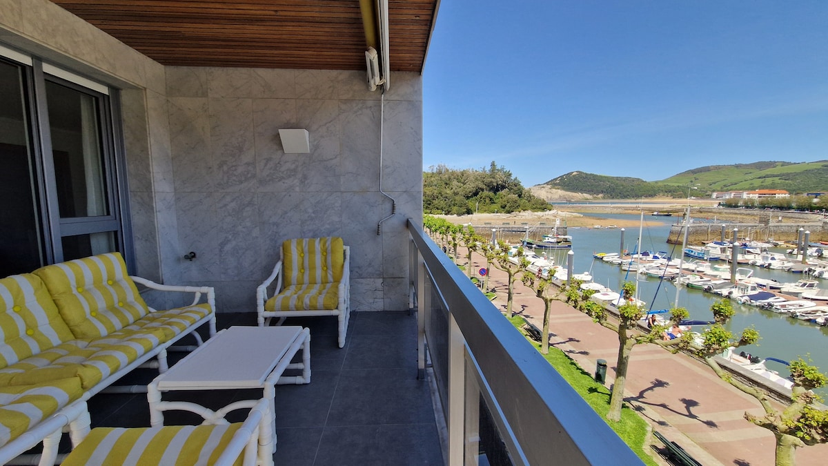 Este apartamento es ideal para grupos de 4 a 6 huéspedes. Lo reformamos reduciendo de 4 a 3 habitaciones. Creamos una zona amplia donde unimos la cocina al comedor , al salón y a la terraza , que da a los chalets que están frente a la ría de Plentzia. La ubicación, para pasar unos días en Plentzia, está genial. Junto al puerto, cerca de la playa, con la ría en frente y el casco viejo detrás. Aunque tiene conexiones con Bilbao Centro y con Getxo, gracias al metro, lo mejor es su entorno.