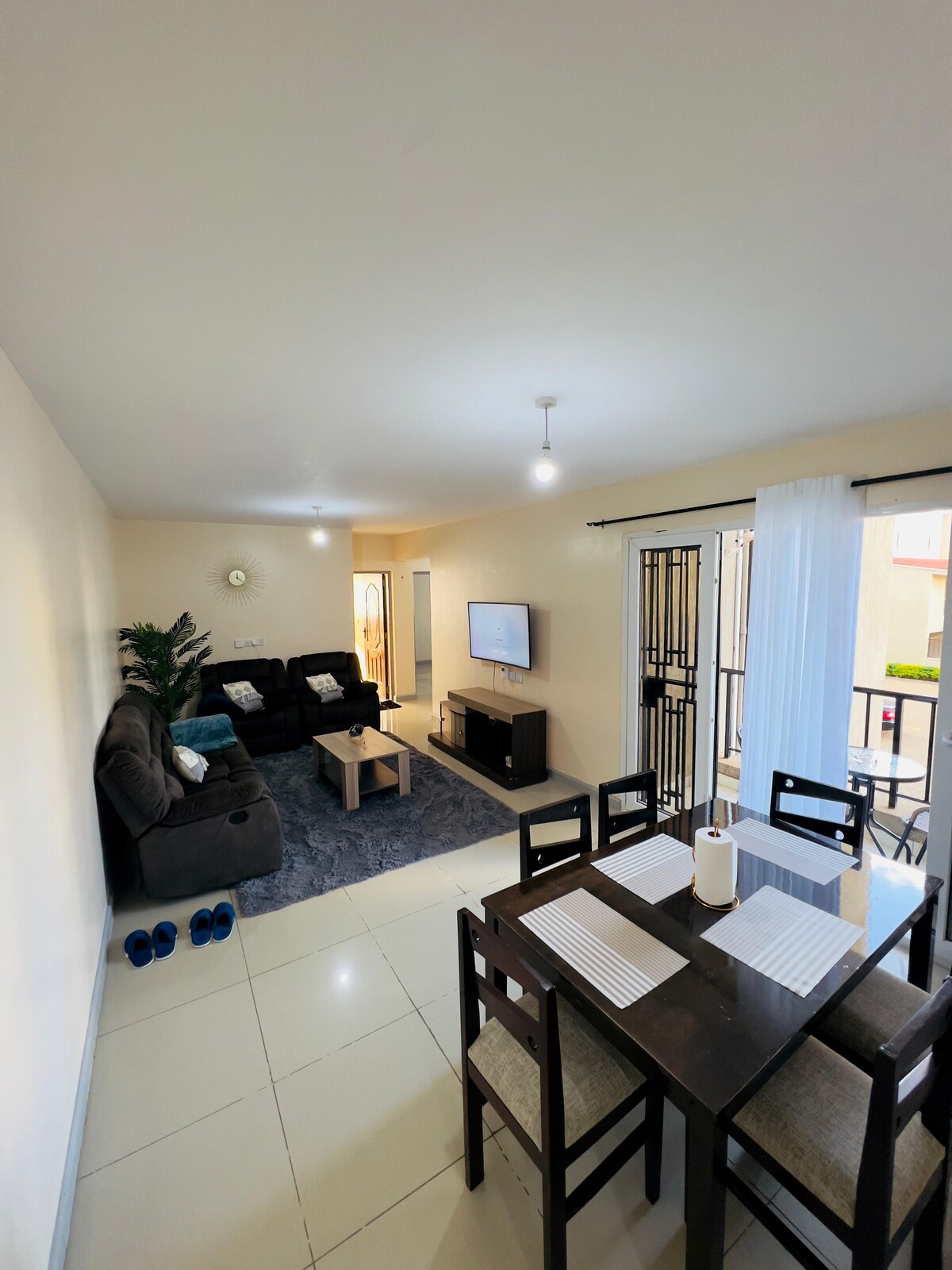 Welcome to our 3-bedroom, 2-bath BnB located in a peaceful neighborhood. The property offers easy access to the airport and Eldoret town, and has ample parking. Enjoy self-check-in, fast Wi-Fi, and a smart TV in the spacious living room. The master bedroom has an en-suite bathroom, and there's a fully equipped kitchen with an access to a backyard. Guests have access to a shared swimming pool and gym. The host is available for assistance. Enjoy comfort, security, and convenience during your stay.