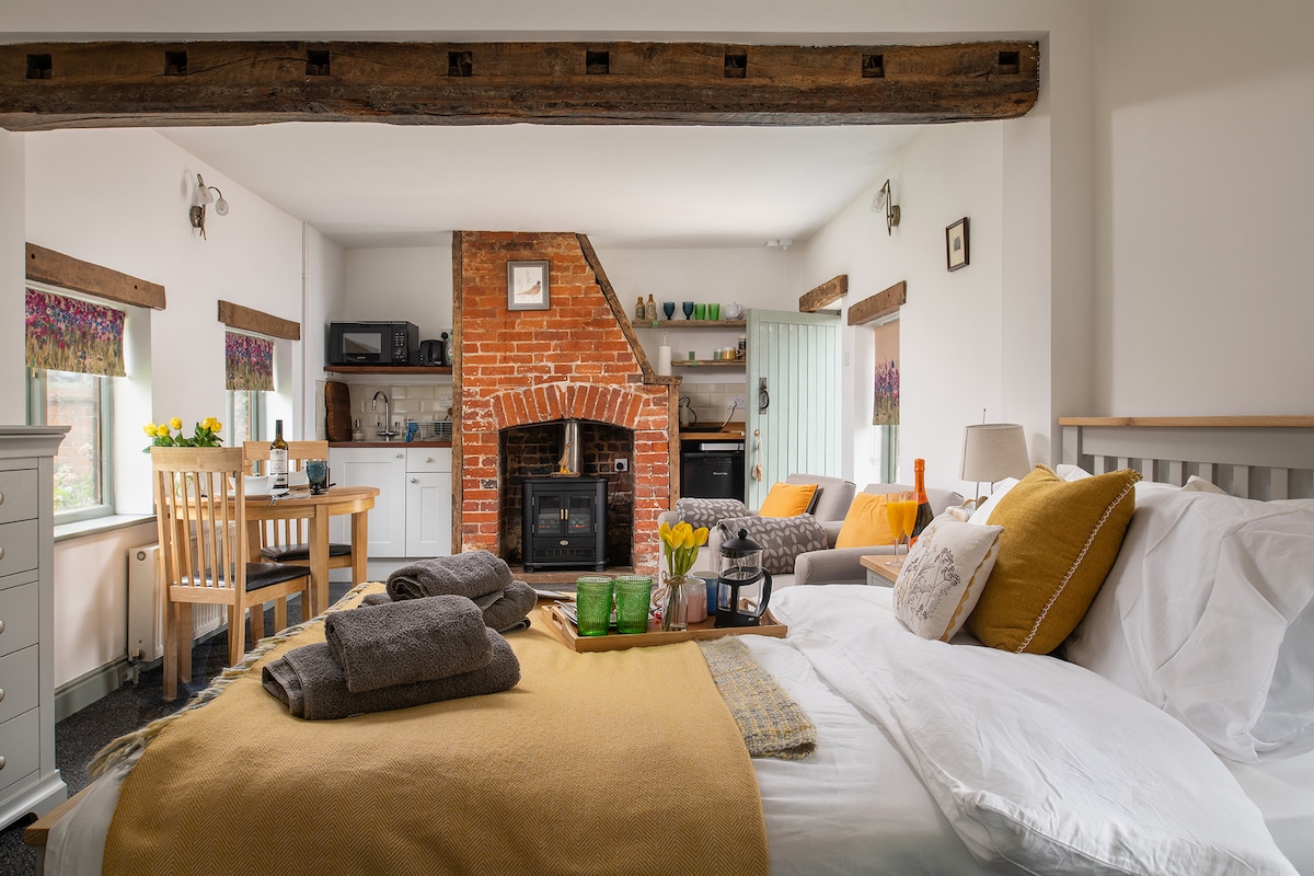 The Old Dairy is a quaint studio cottage in the New Forest. The one bedroom studio was once the old parlor room for the dairy. With lots of original features such as the old brick chimney breast and wooden beams. This is perfect for a couple who want to come away to explore the forest for a few days. Equipped with a kitchenette for small meals with fridge microwave and single induction hob it also has a shower room. Set on our 70 acre farm which you can explore with fresh farm eggs daily.