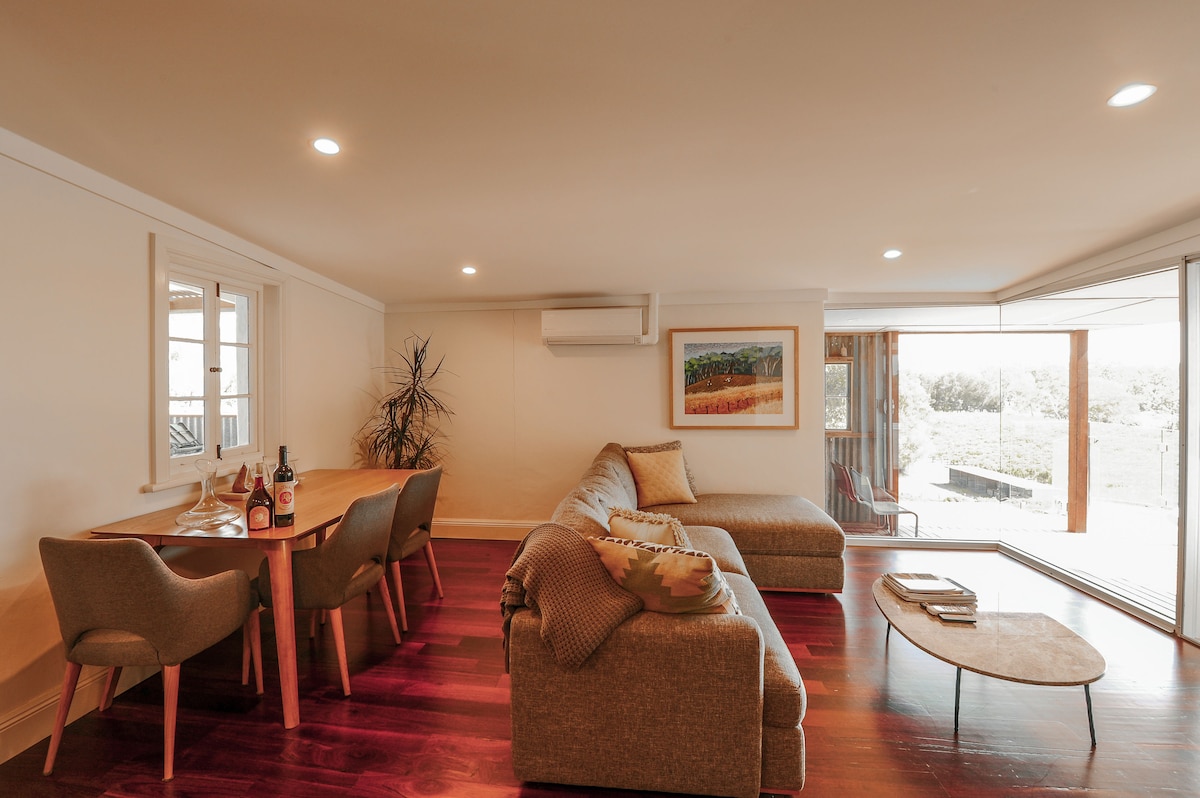 A cosy, curated cottage with a rustic vibe, Ode to the Orchard is surrounded by the Adelaide Hills’ finest wineries and sits high on 16 acres. It is one of the original stone homes of the area and enjoys stunning 360 degree views of picturesque Lenswood. There is no better place to relax: soak in the gorgeous claw-foot bath looking out to the stars, enjoy that glass of local red by the fire, or try out our apple crumble recipe in the vintage wood-fired Aga.