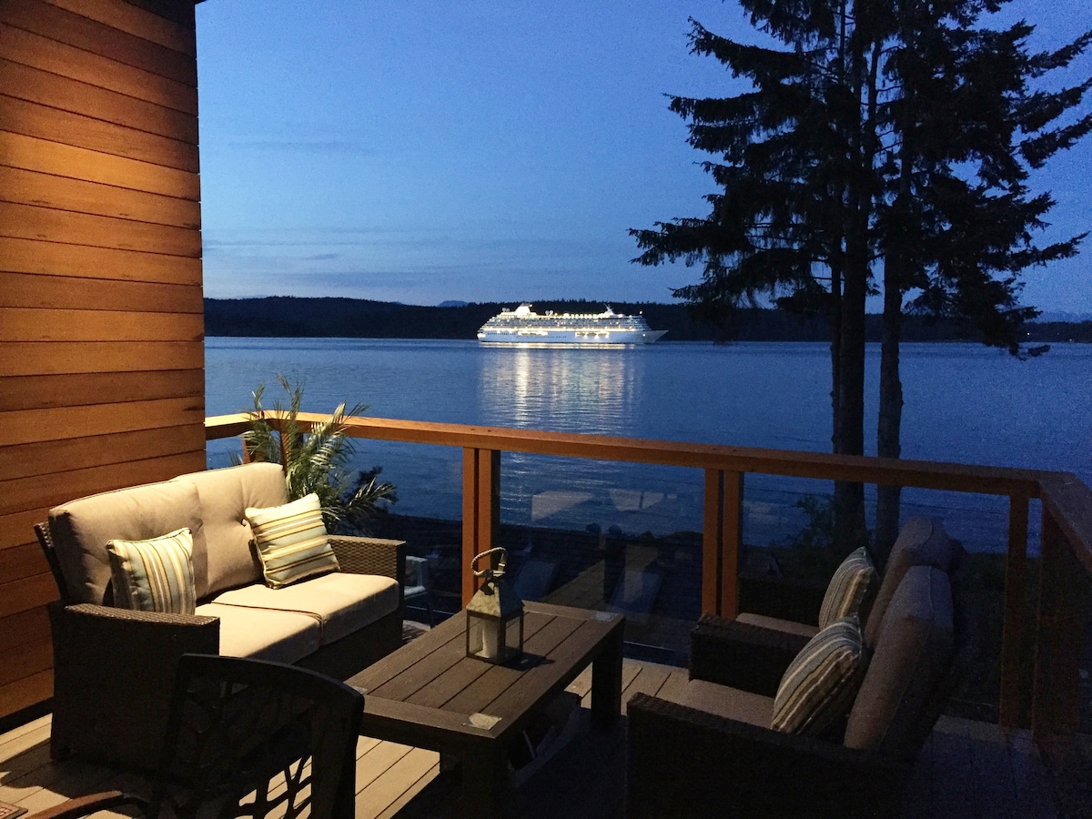 Experience The Tiny Home movement! Perched to capture the extraordinary ocean view, our tiny home is comfortable, and private. Enjoy the view from your loft bed or relax on your deck and watch & listen as nature unfolds. It is not unusual to hear and see whales blowing, sea lions barking and bald eagles chattering. Walk to the beach, petroglyphs, local artisans, and winery. The Tiny Home is built with non-toxic materials Please note: we live on the same property and are an approved rental.