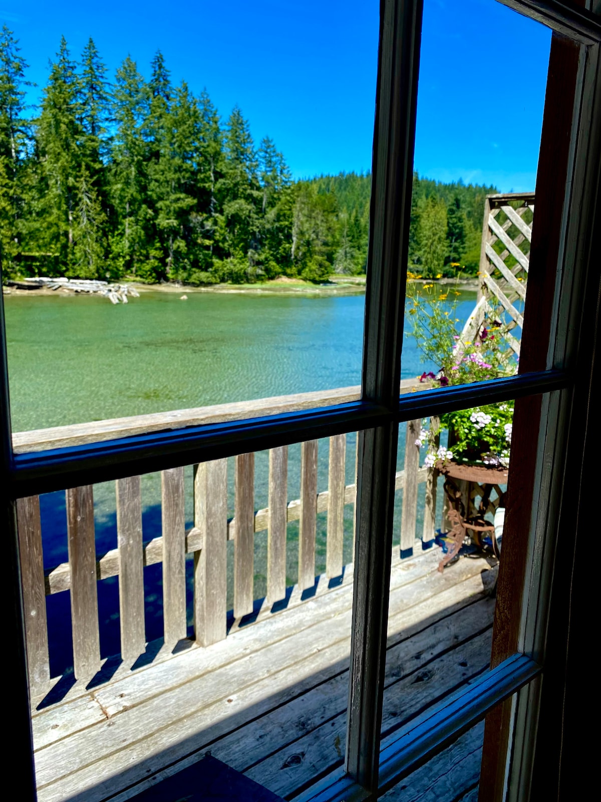 The property is surrounded with giant evergreens situated on the quaint and quiet Quinsam river. With river front access. The suite is in a separate building on the property, very private. It has funky slate floors, skylights and 12 foot ceilings. A fully loaded kitchen, which comes stocked with coffee beans, and assortment of teas. A cozy separate bedroom. There are two decks one covered, both with table and chairs and a Barbecue. We also have a PVR for recording your favorite shows.